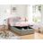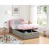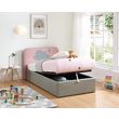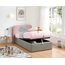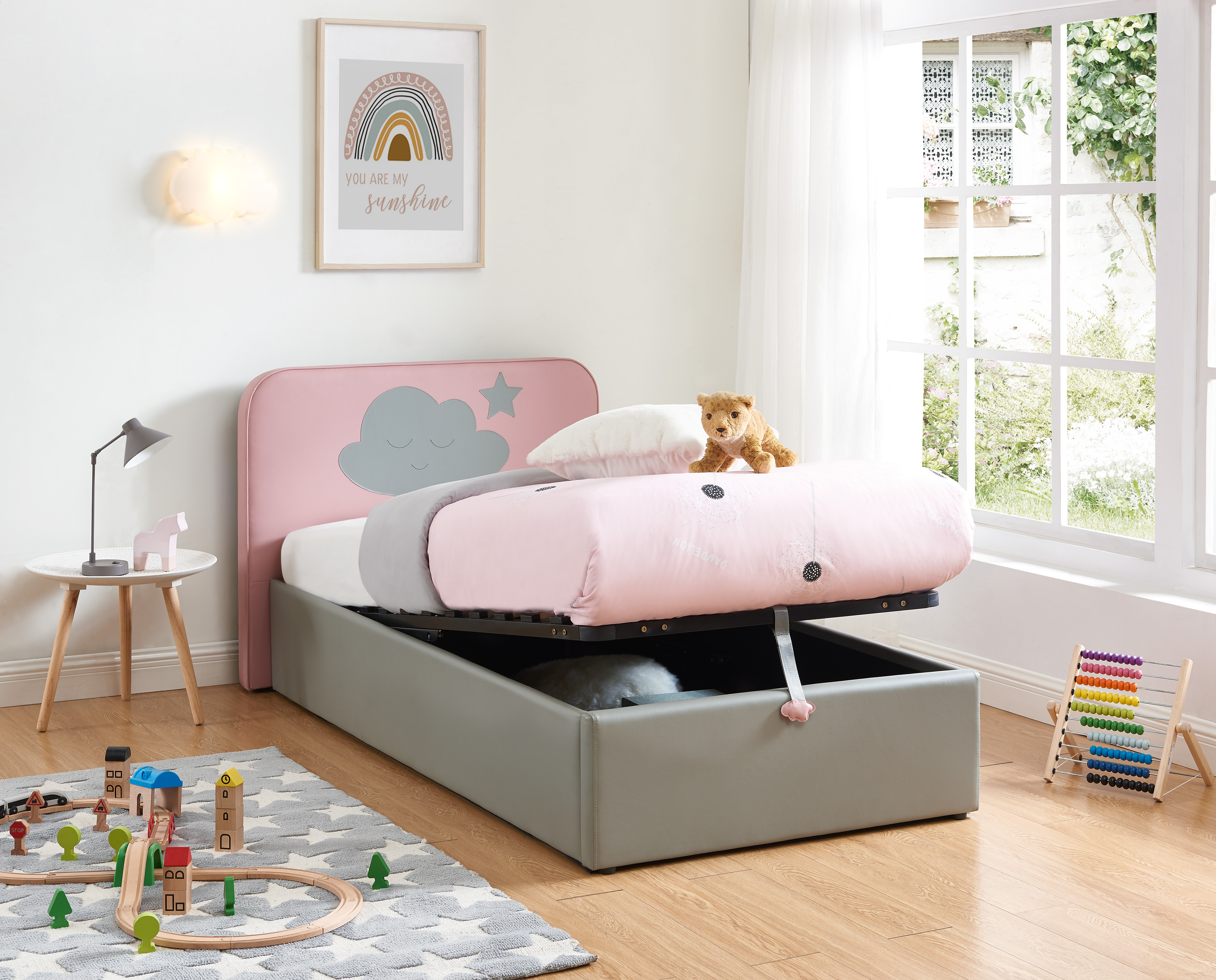 Lit coffre enfant NUAGE - structure en bois et en contreplaqué - revêtement PVC gris et rose - sommier relevable à lattes 90x190cm inclus - dimensions : l110 x P205 x H90cm