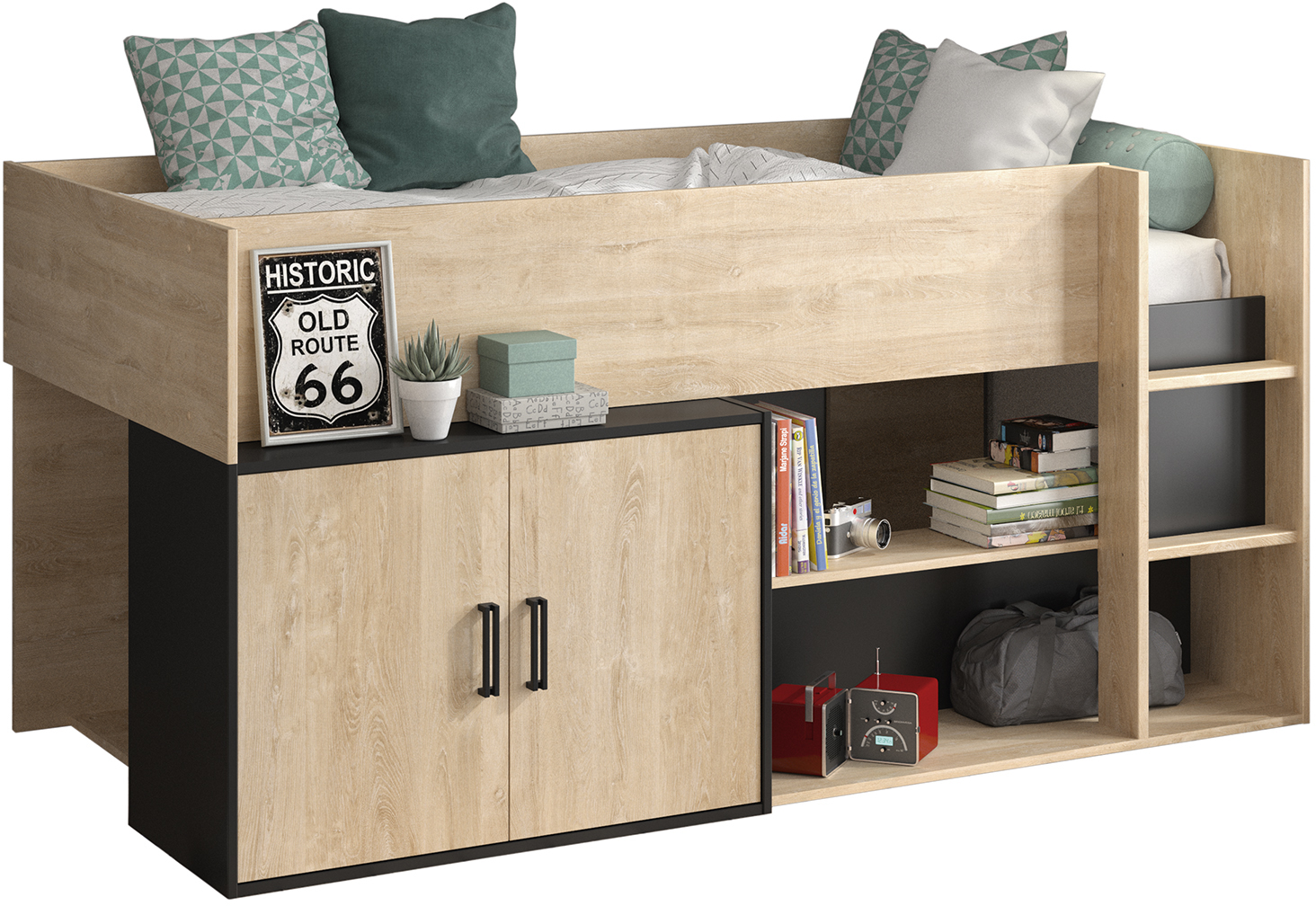 Ma fille de 5 ans est ravie de son nouveau lit, la mi hauteur est parfaite et permet de ranger les caisses de jouets dessous. Seul petit bémol les portes du placard qui sont difficiles à régler comme bien souvent sur ce genre de meubles. Nous avions un peu peur de la livraison et de l'état à l'arrivée, mais tout s'est bien passé.
