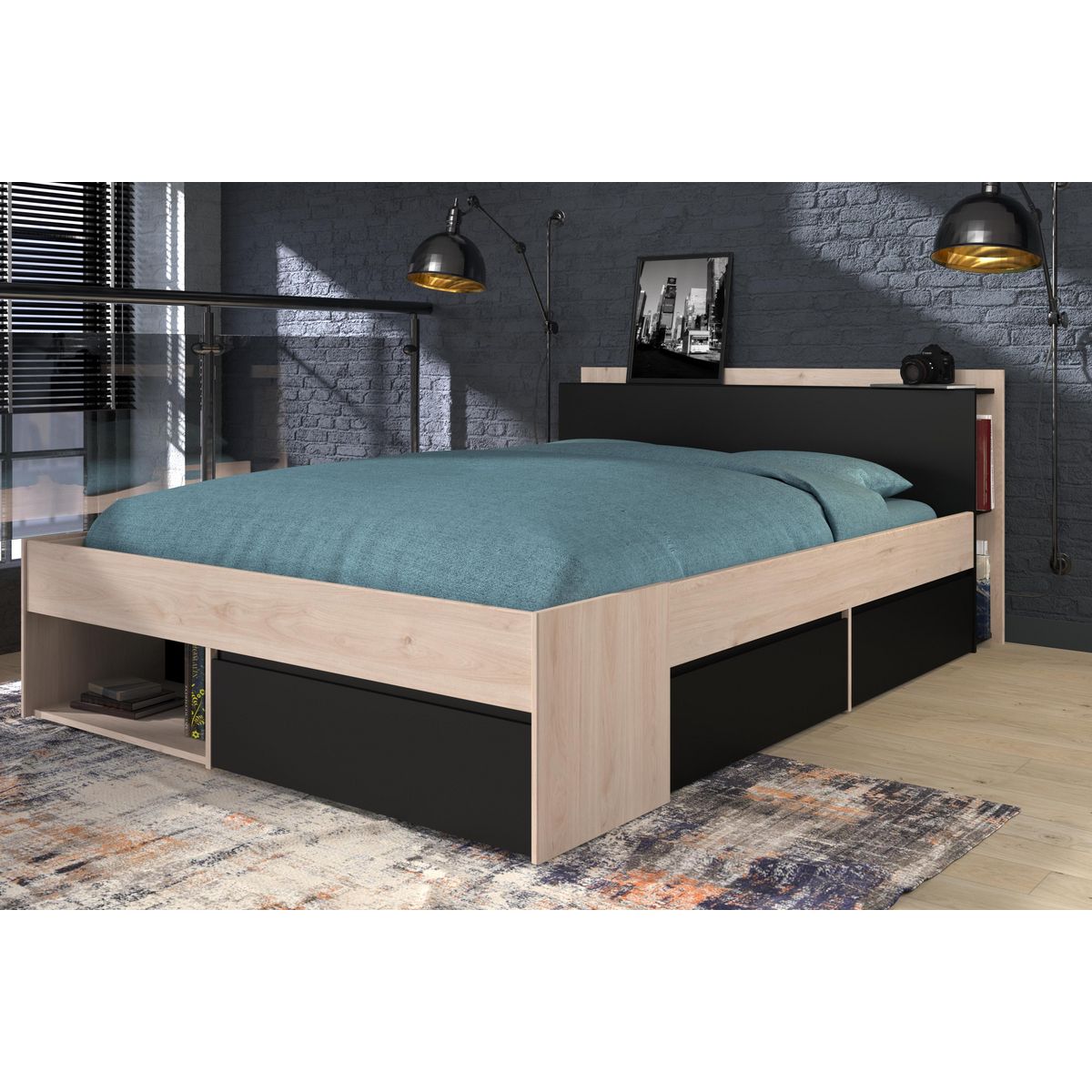 Vous avez une petite surface de chambre et avez besoin de rangements supplémentaires ? Ce lit aux dimensions de couchage 140 x 200 cm BOOST sera votre allié. Disponible en 2 coloris, cette gamme propose du mobilier moderne à petit prix et de qualité pour votre chambre à coucher. Grâce à son style totalement dans l'air du temps, il saura se glisser dans toutes les chambres. La structure en panneaux de particules d’épaisseurs 22 mm et 15 mm permet une fabrication très solide. Ce lit est pratique est répond à une multitude de besoins. En effet, il dispose de 3 tiroirs, et d’un environnement avec 2 x 2 niches latérales avec un passage pour les câbles. Il garantit 160L de rangement ! En plus, il est de fabrication Française, vous n’allez pas être déçu !
