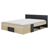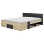 Le lit DIAGONE avec tiroirs de rangement est conçu pour allier style et praticité. Avec ses dimensions de 160 x 200 cm, il s'intègre parfaitement dans n'importe quelle chambre. Sa structure en panneaux de particules revêtus de papier châtaignier naturel et uni noir offre une esthétique chaleureuse et contemporaine, idéale pour créer une ambiance accueillante.