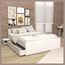 Coloris laqué blanc, lit 140*190cm avec 1 tiroir + 2 chevets intégrés, panneau de particules, bois