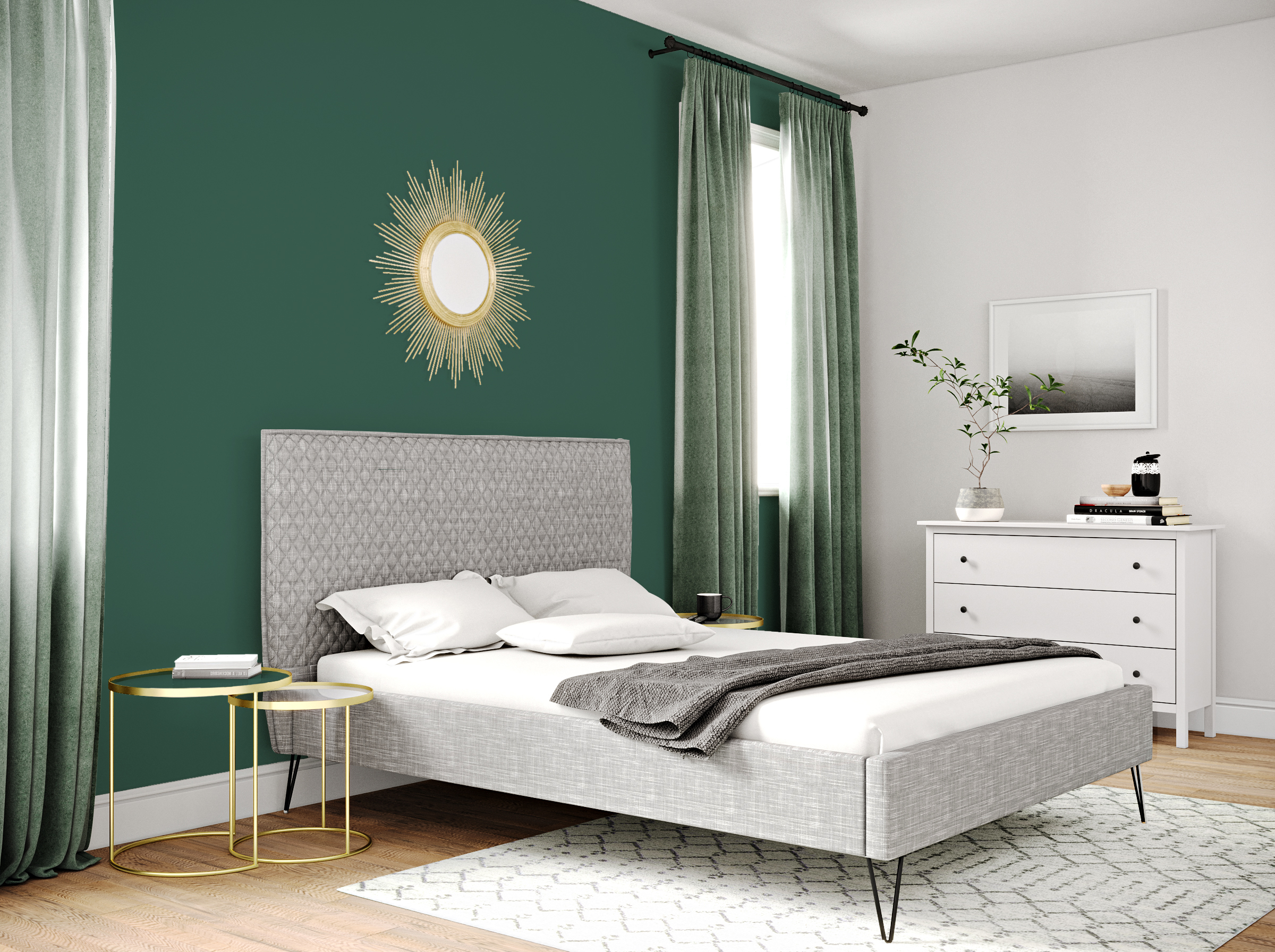 Finition effet dimant simili noir ou tissu gris - Pieds métal - Matelas vendu séparément