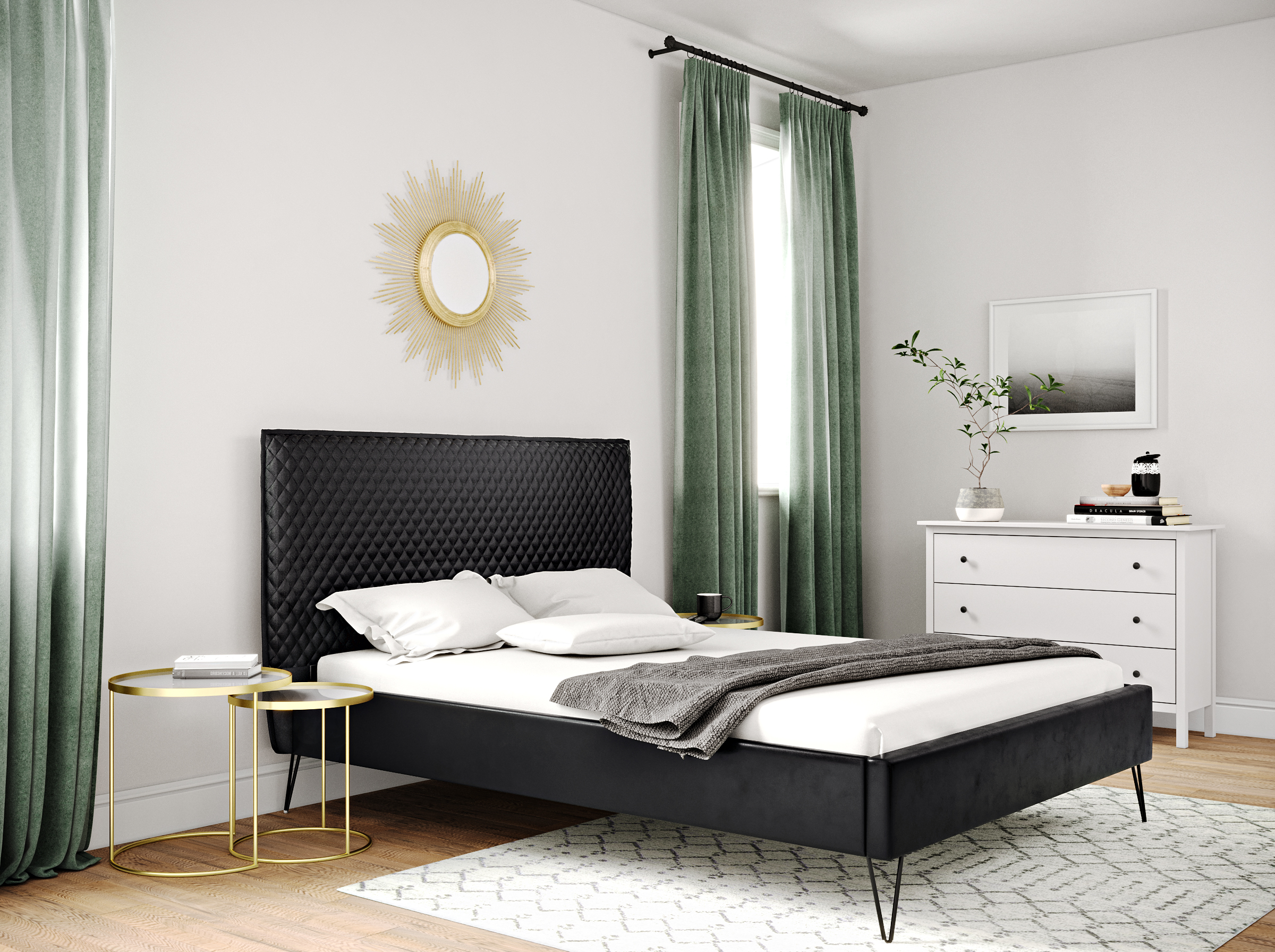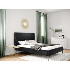 Finition effet dimant simili noir ou tissu gris - Pieds métal - Matelas vendu séparément