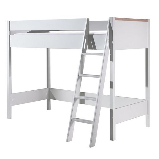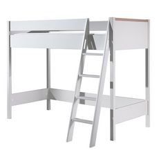 Livré avec sommier et échelle, coloris blanc laqué, panneaux de particules et bois