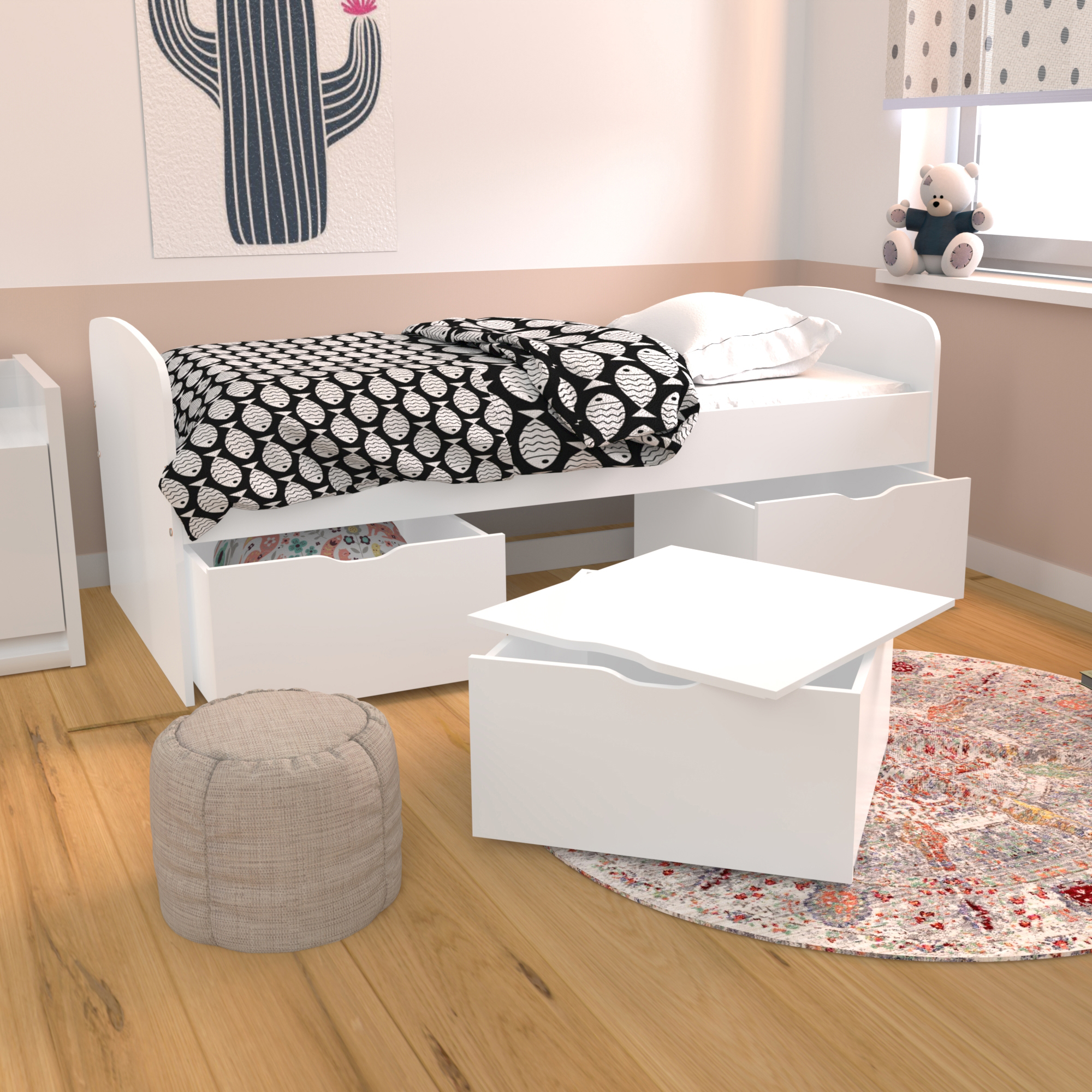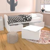 Le lit MIA est le lit fonctionnel par excellence. Conçu pour permettre à vos enfants d'avoir un espace nuit fonctionnel et agréable, il est composé de 2 tiroirs qui permettent d'optimiser le rangement. Le plus du lit MIA est sans aucun doute son coffre monté sur roulette qui peut également servir de table d'appoint pour jouer. Grâce à son design sobre et intemporel, il conviendra aux chambres des petits comme des plus grands.