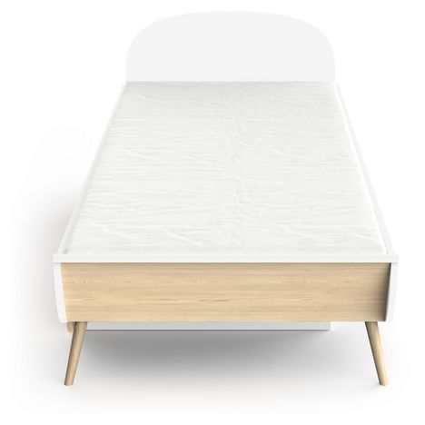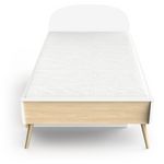 MDF laqué. Tiroir en option. Panneau pied de lit en placage pin. Pieds en hévéa.