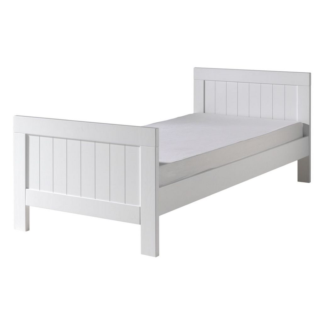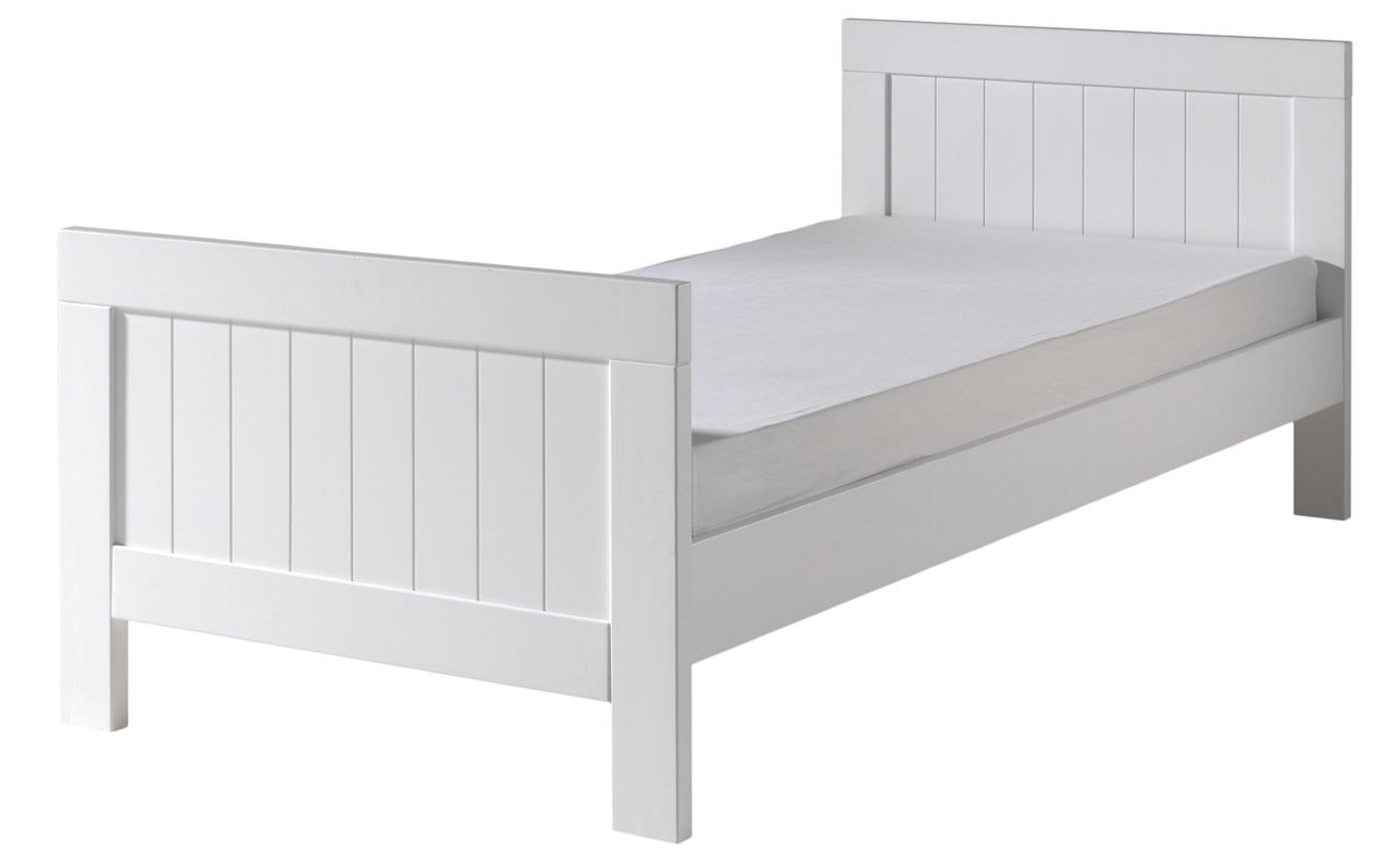 Découvrez le lit Marine en bois peint en blanc. Sa tête structure simple vous offre une tête et un bout de lit. Unisexe, découvrez la collection complète Marine (armoire, bureau...). Livré avec sommier 90*200.
