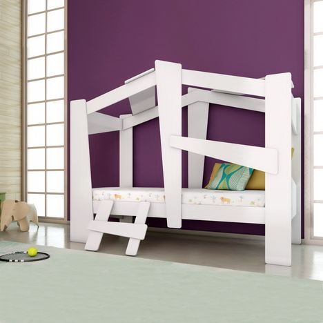 Créez une ambiance de jeux et faites rêver vos enfants avec le lit cabane SAFARI, Vous avez trouvé la solution pour rendre le moment du coucher très appréciable. Doté d'une petite échelle et sommier inclus.