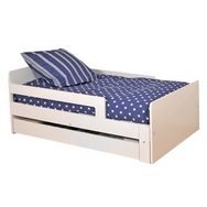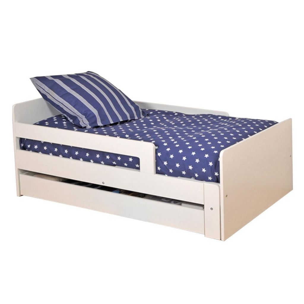 Un lit évolutif dont le sommier se tire pour passer d'un couchage 90x140 cm lorsque votre enfant passe du lit bébé au lit enfant, puis 90x190 et 90x200 cm lorsqu'il grandit !