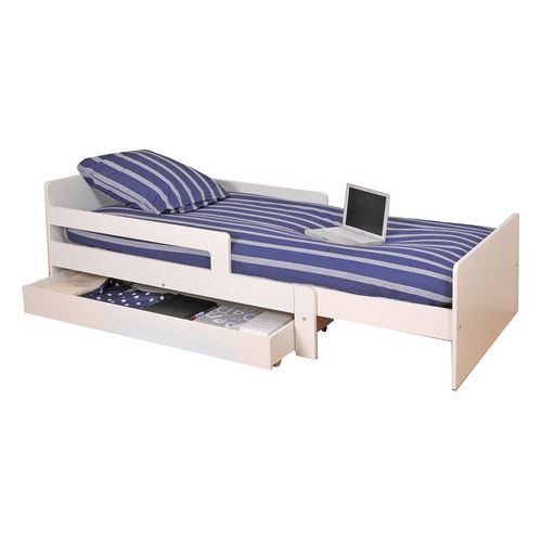 un lit évolutif dont le sommier se tire pour passer d'un couchage 90x140cm lorsque votre enfant passe du lit bébé au lit enfant, puis 90x190 et 90x200cm lorsqu'il grandit !