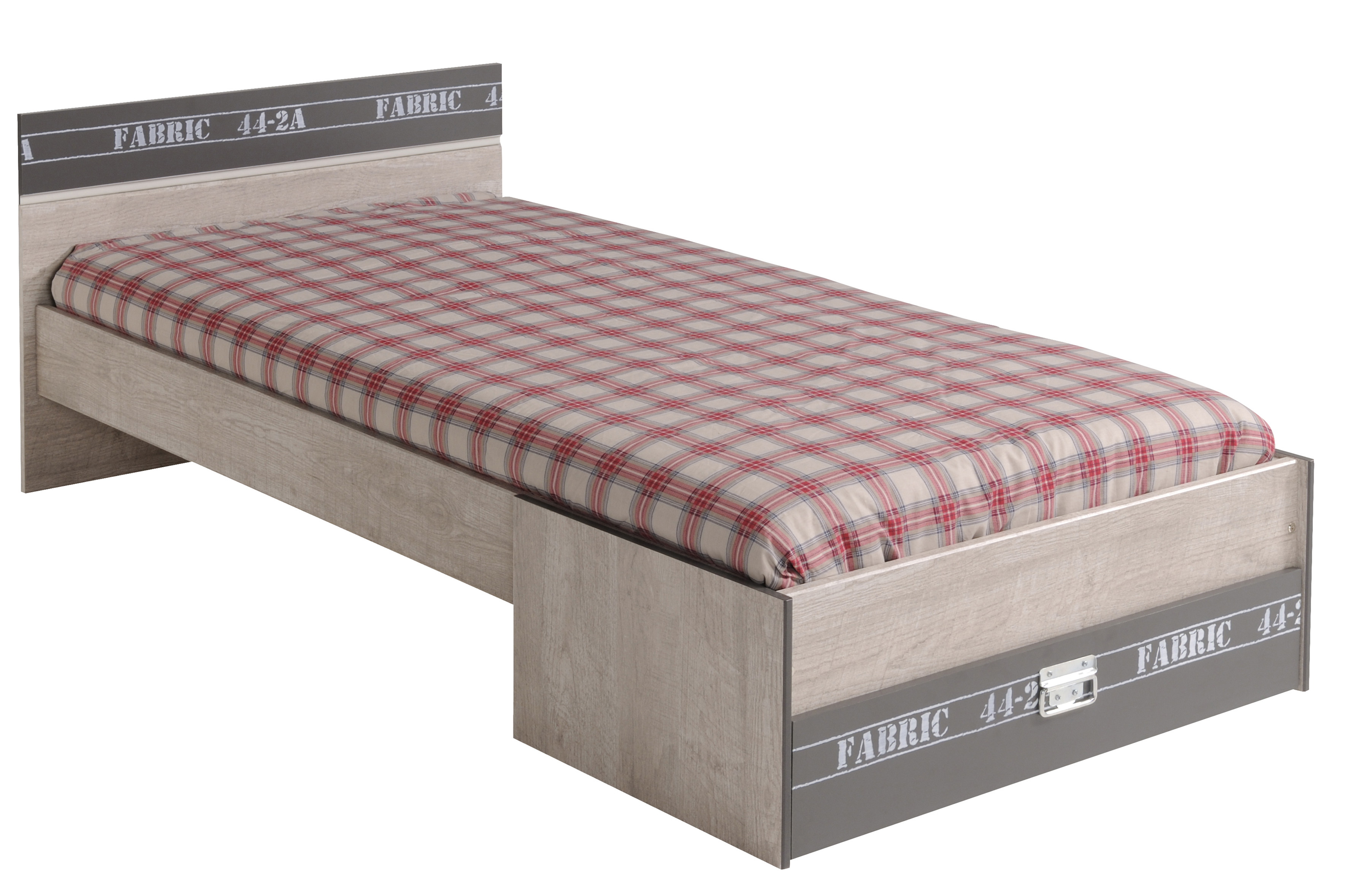 Lit junior style industriel couchage 90x200cm + 1 tiroir de rangement bout de lit LOFTY