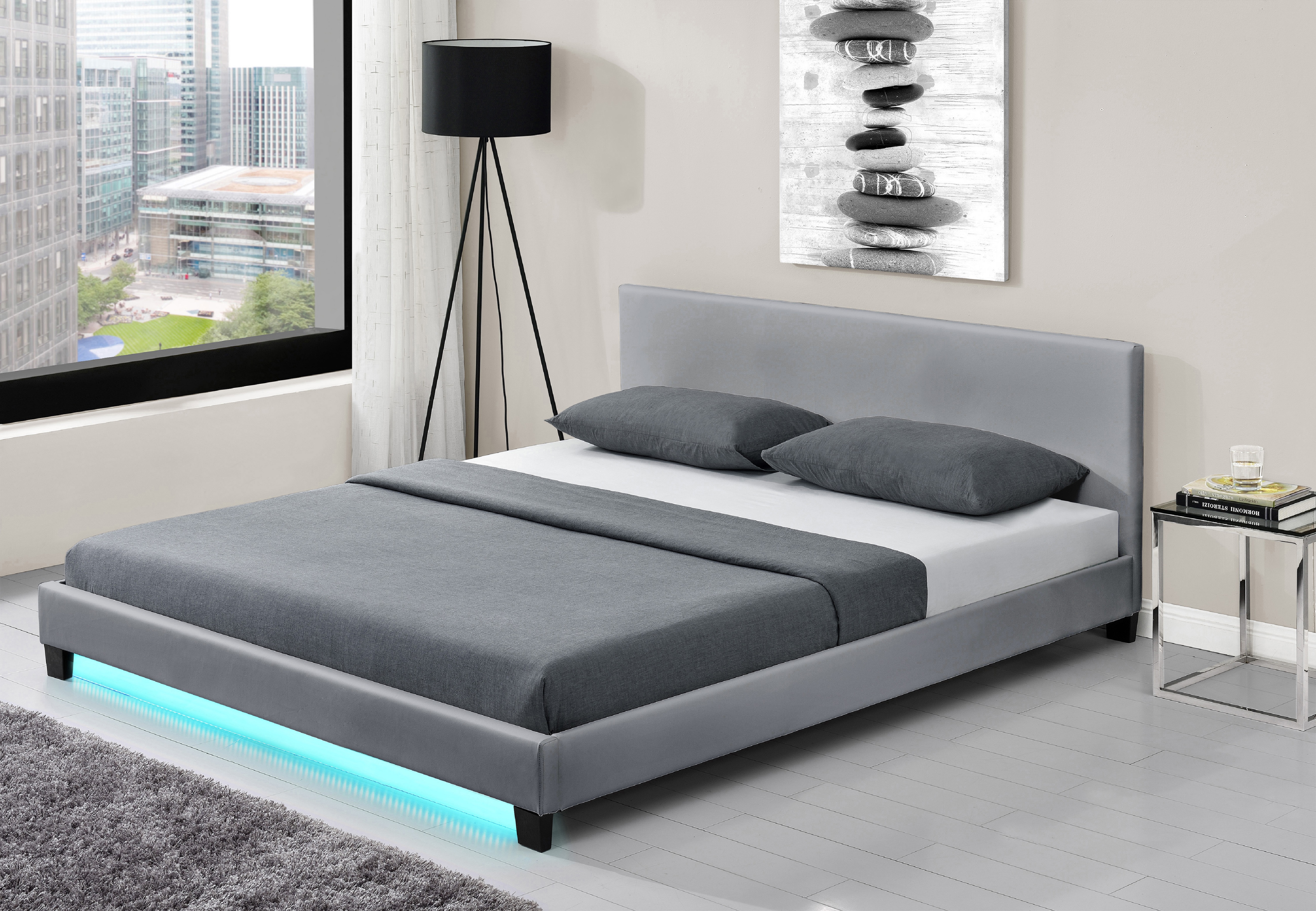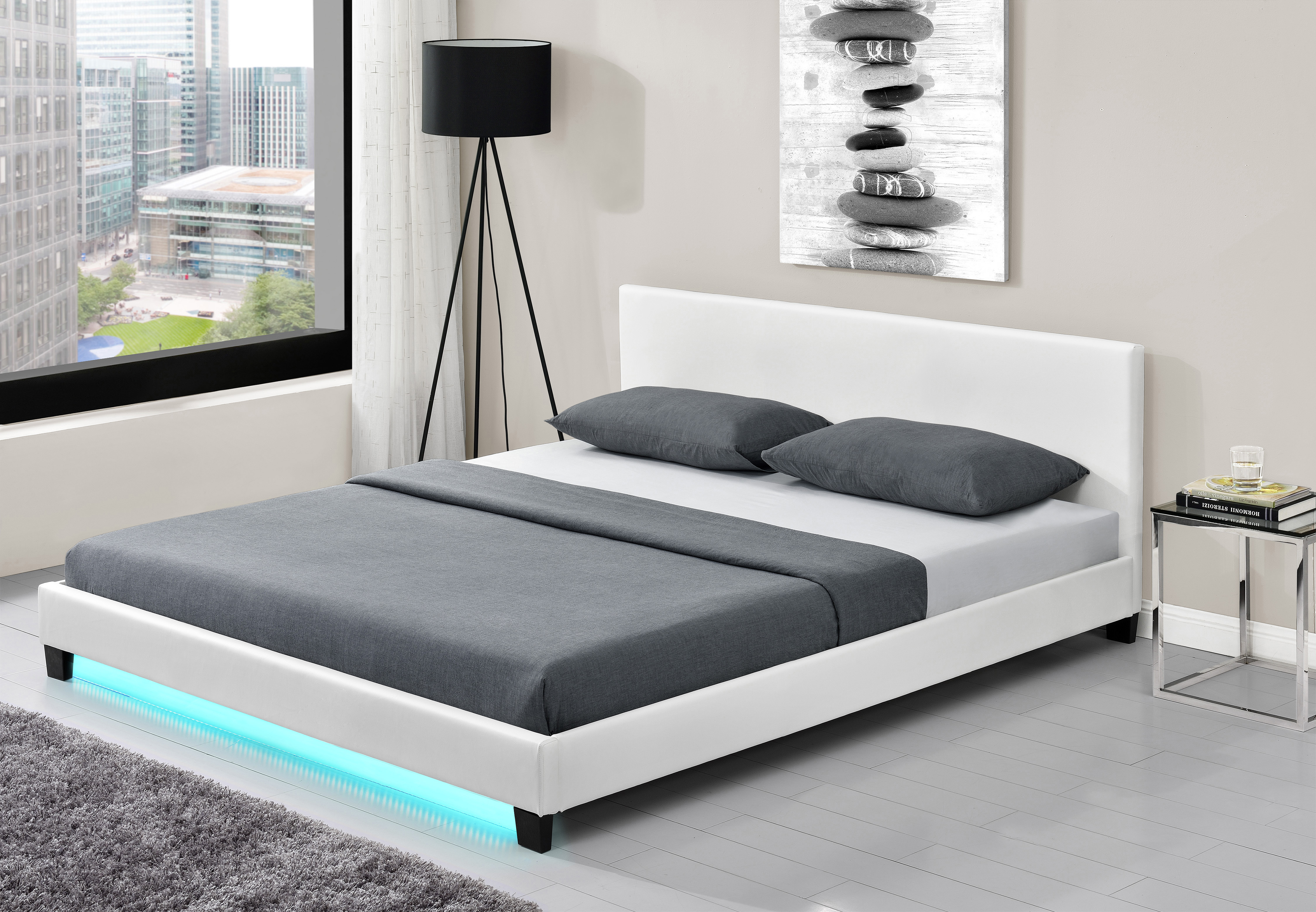Le lit Martin est un lit design muni d'une tête de lit assortie. Il dispose également d'un sommier à lattes pour un couchage 2 personnes confortable. Son revêtement en simili, associé à une structure en panneaux de particules en font un lit robuste et facile d'entretien. Véritable atout de ce lit 2 personnes est le système LED placé au pied du lit pour une ambiance cosy ou festive assurée !