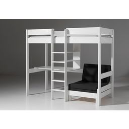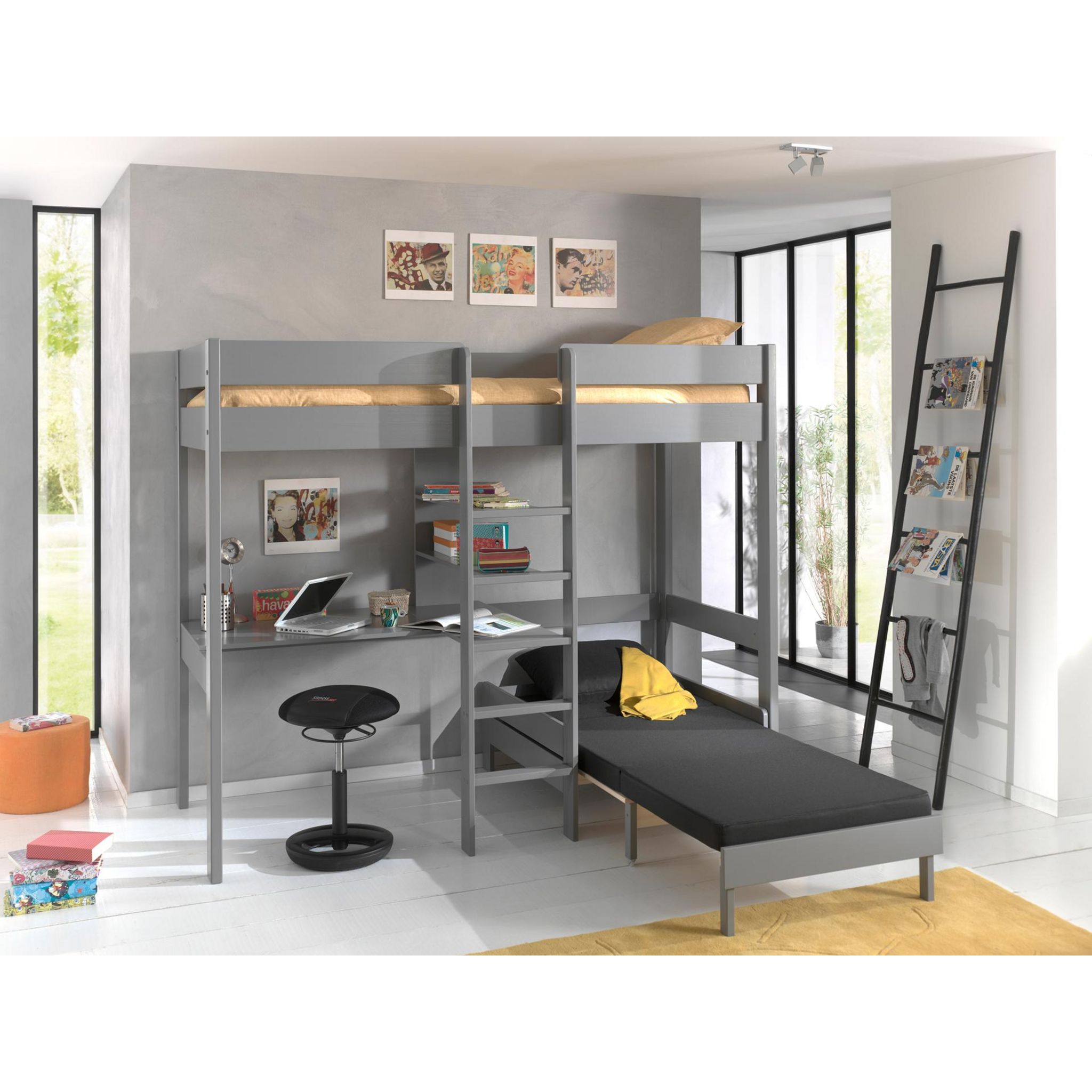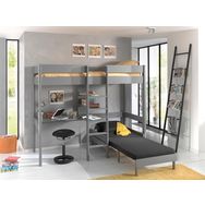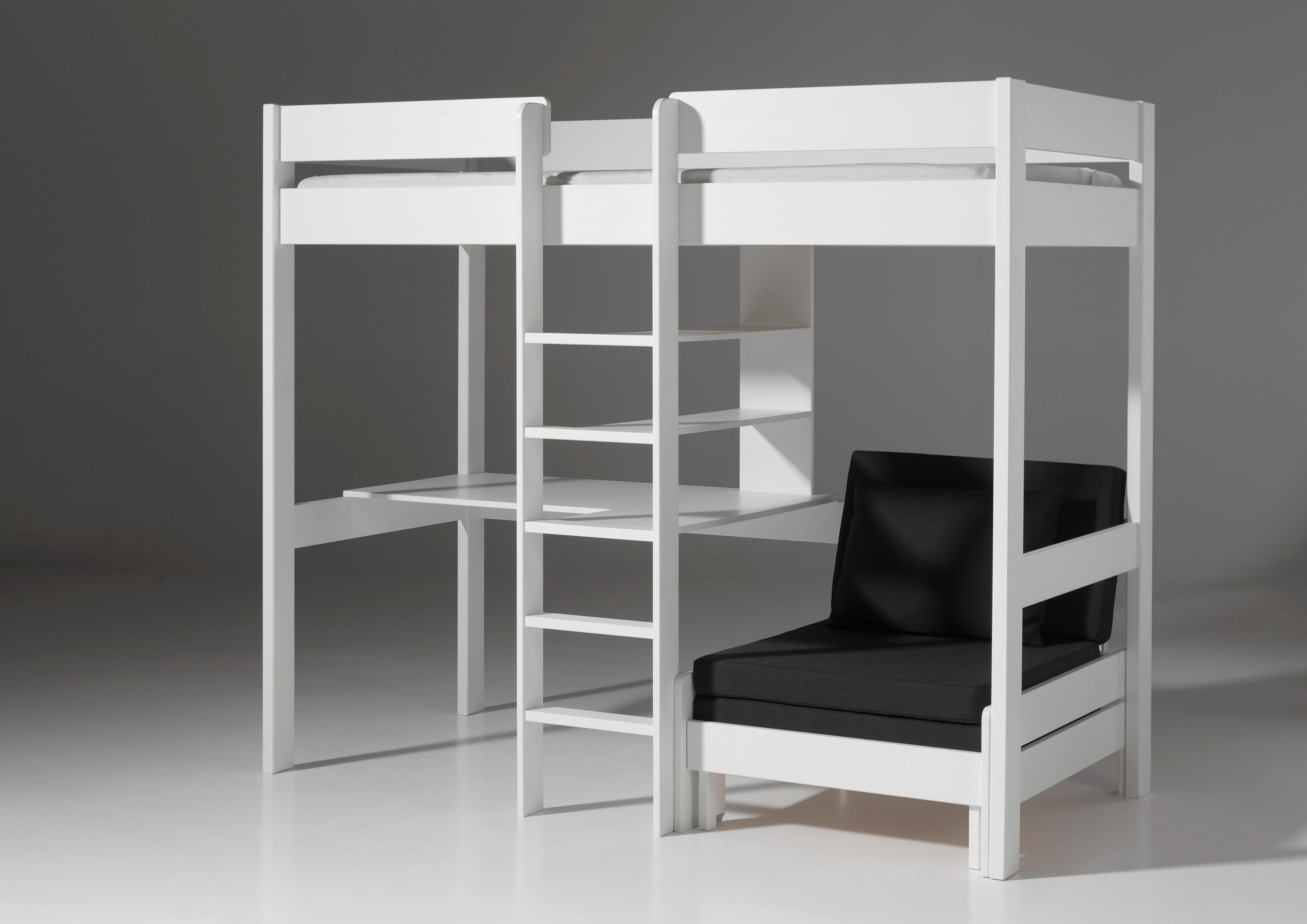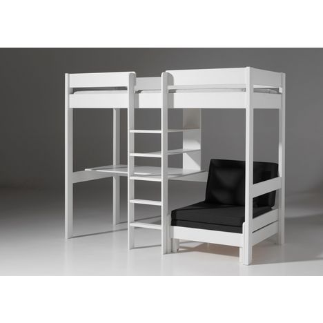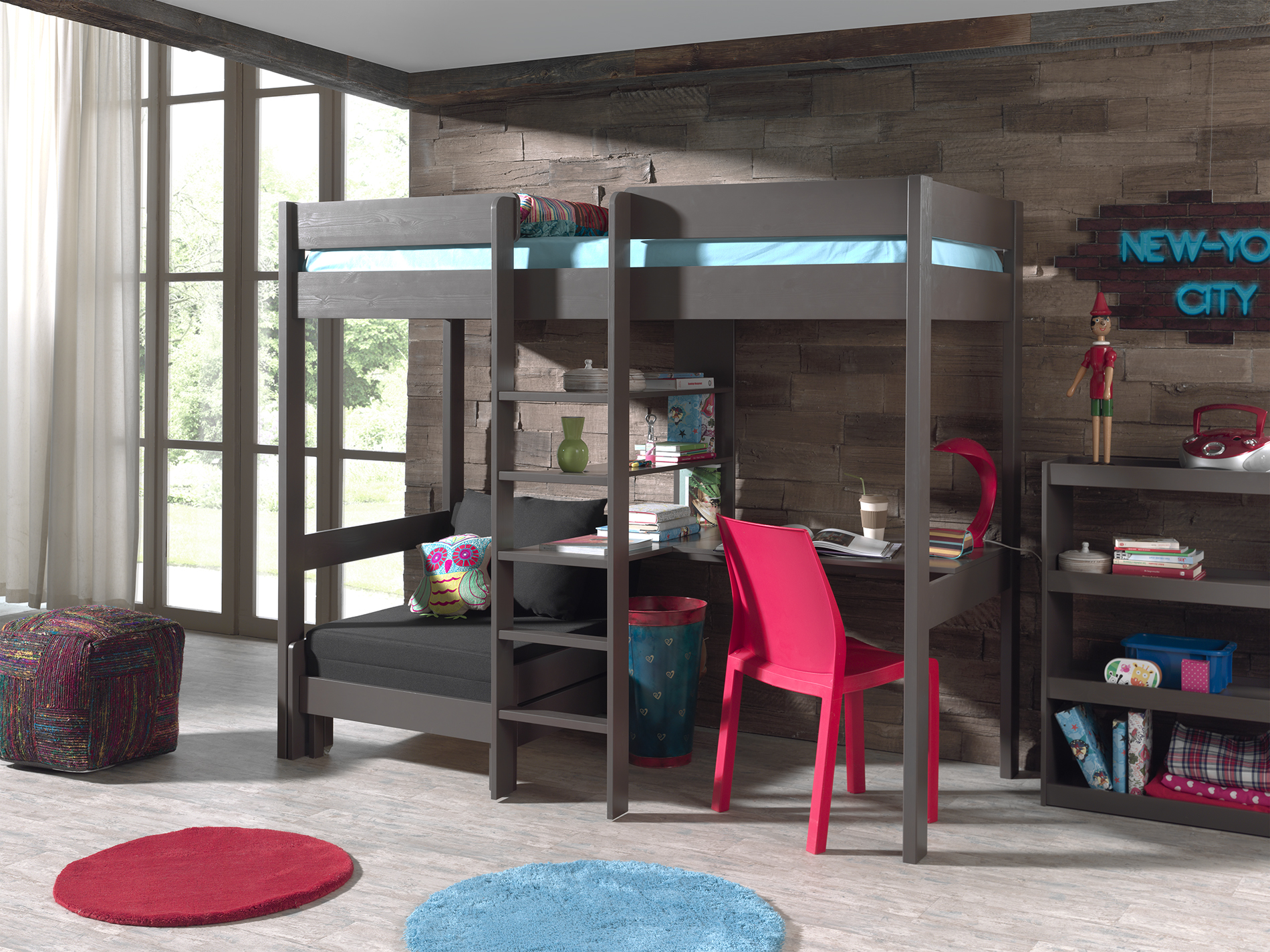 Alliez le côté fonctionnel et design avec le lit surélevé de la collection WOODY (L208,3 x l105,1 x H206,9cm). En plus d’être confortable pour votre enfant, ce lit mezzanine est équipé d’un bureau, d’une bibliothèque ainsi que d’une banquette qui se transforme en lit en un claquement de doigt ! Il est donc hyper fun pour accueillir les copains grâce à ce couchage supplémentaire. Disponible en 2 coloris : taupe ou blanc laqué, cet ensemble est parfait pour aménager les petits espaces. Très solide, cet en-semble en Pin massif/Épicéa vous apportera entière satisfaction ! Contrairement au sommier, le matelas n'est pas inclus, nous vous conseillons de vous munir d'un matelas adapté en taille 90 x 200 cm. Pour la sécurité et une stabilité parfaite, le lit est à fixer au mur.