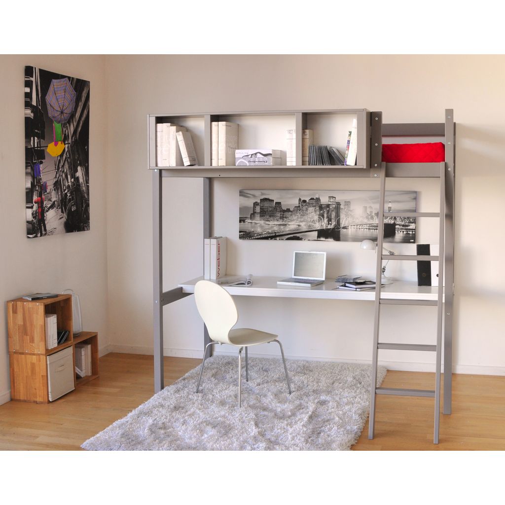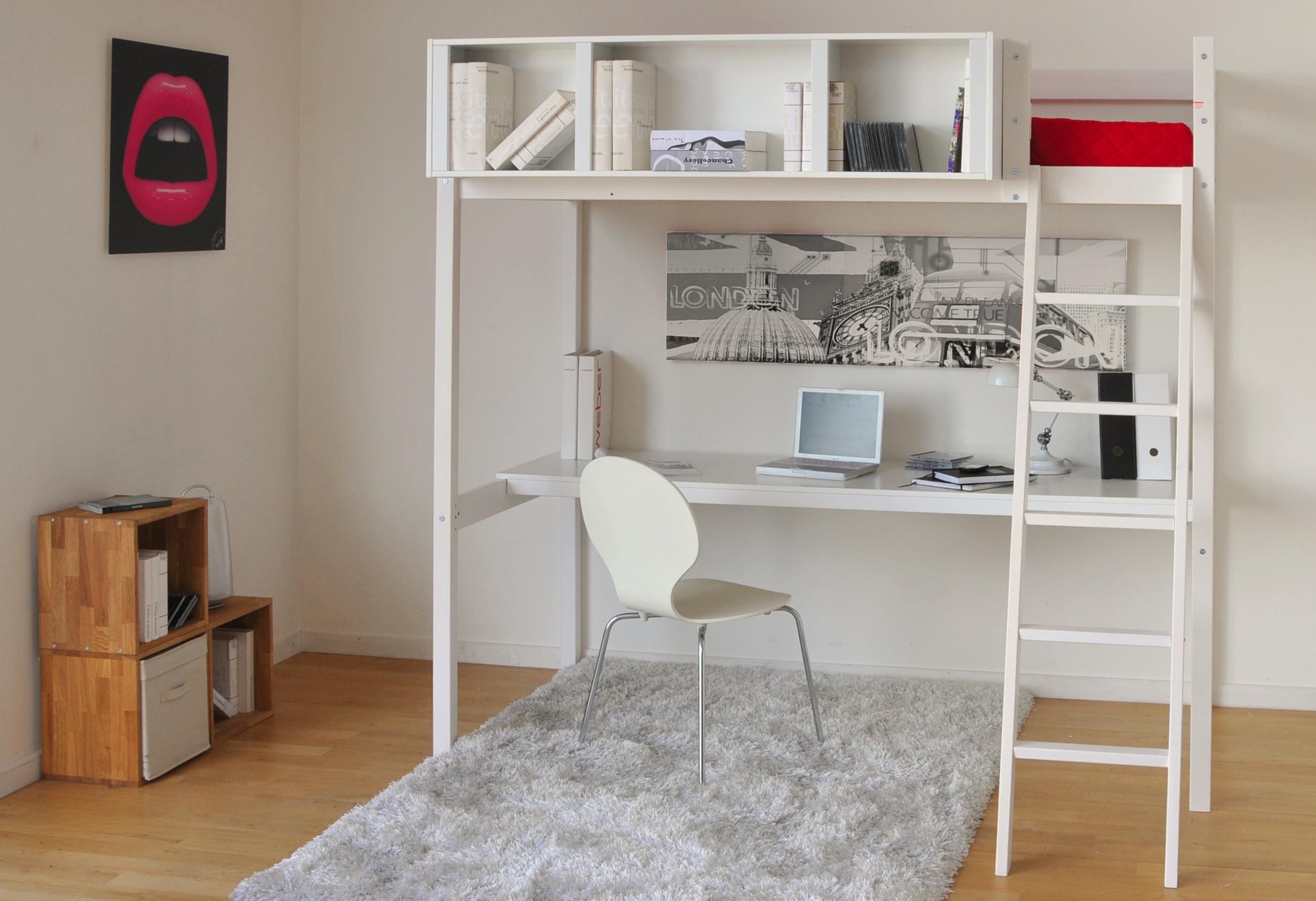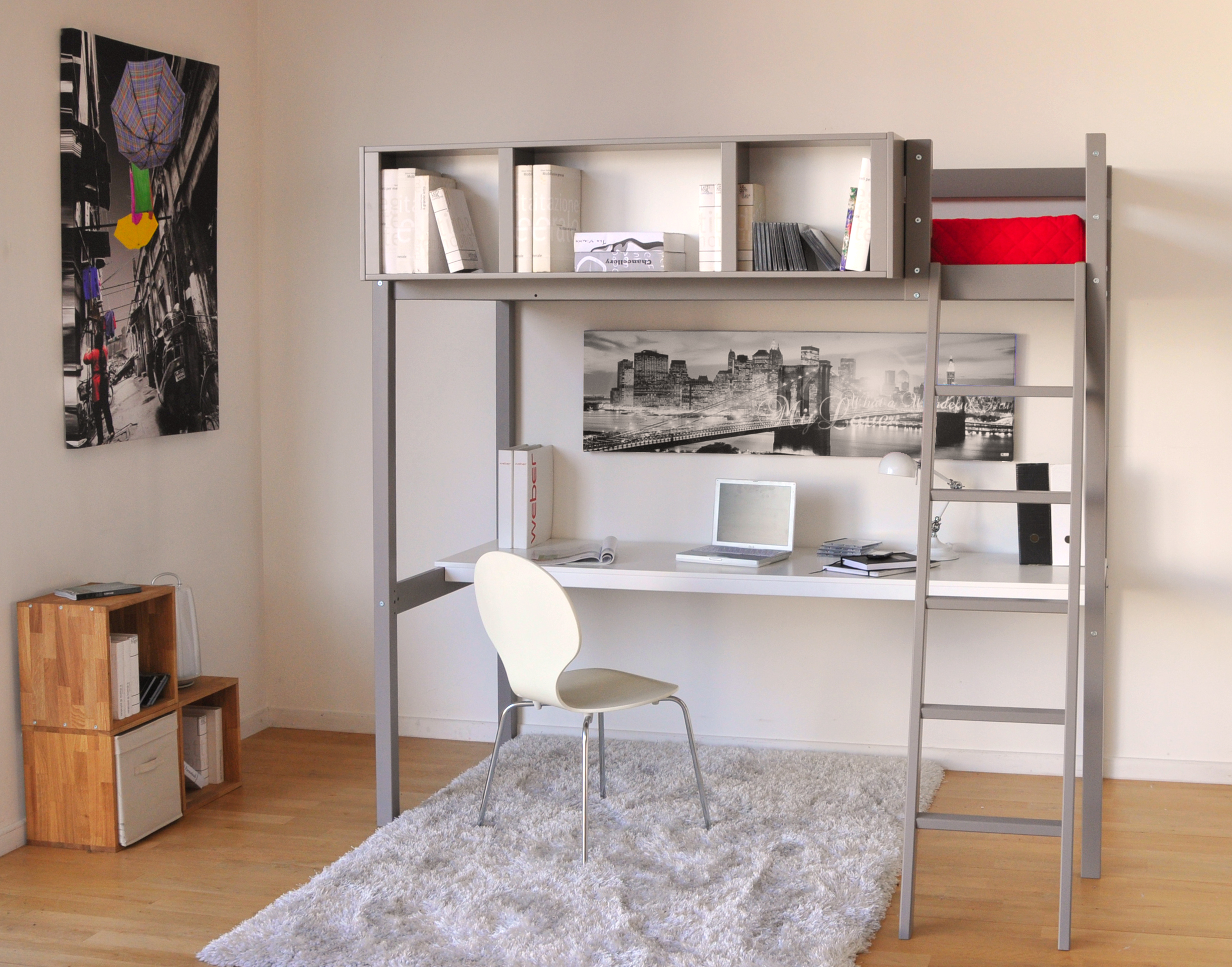 Lit Mezzanine + Sommier + Bureau + Rangement CITY