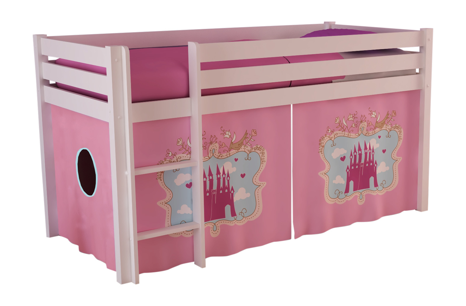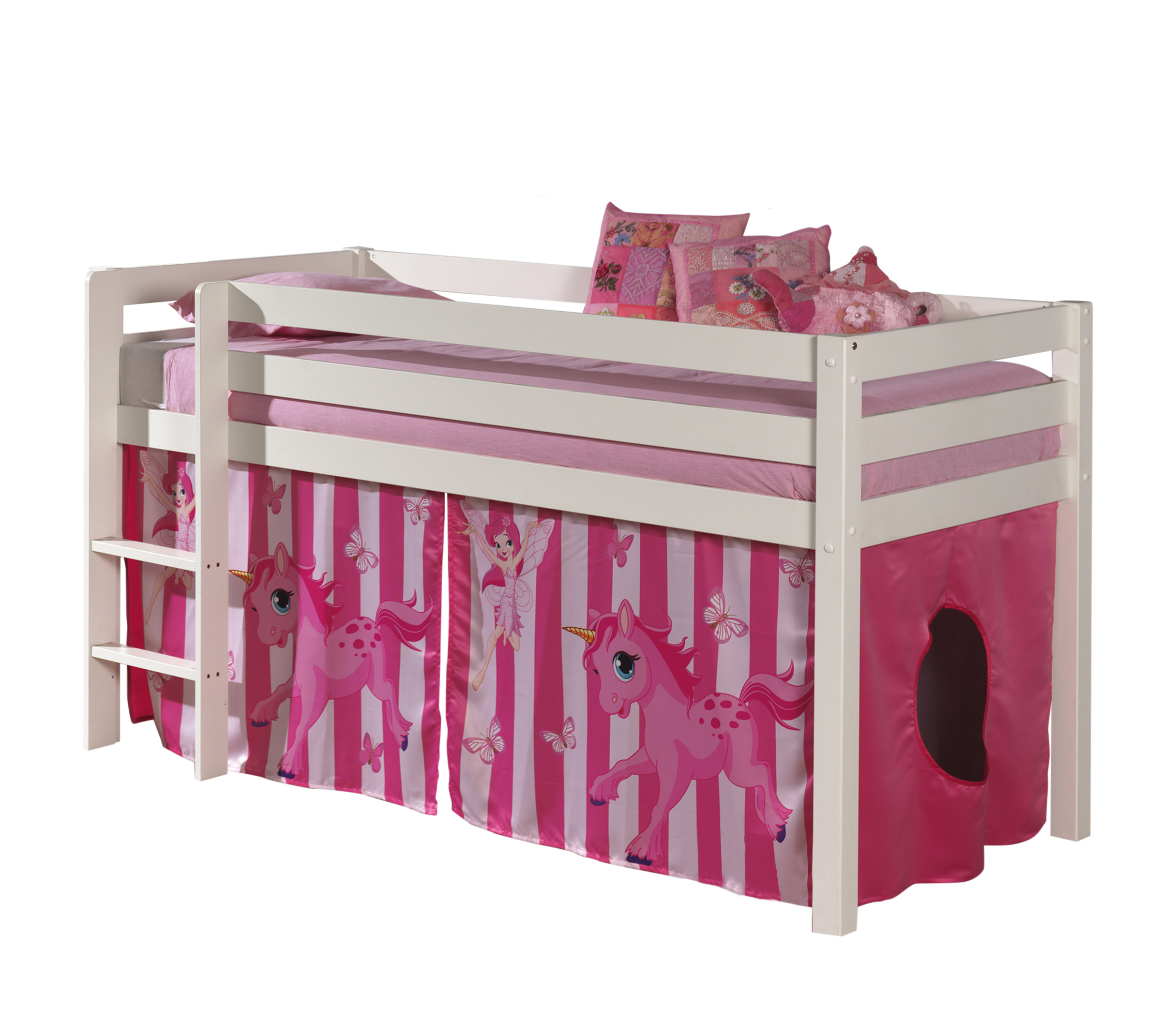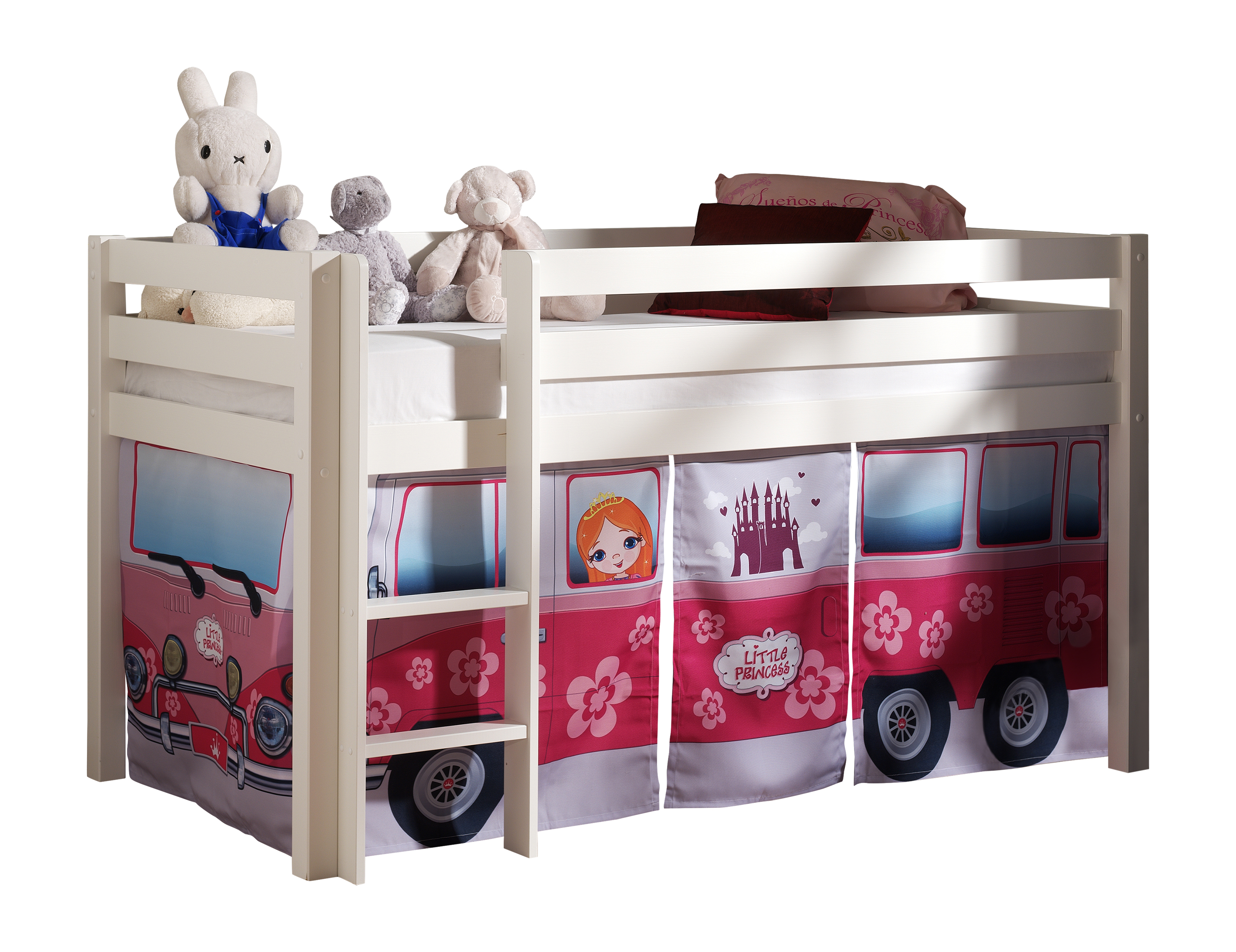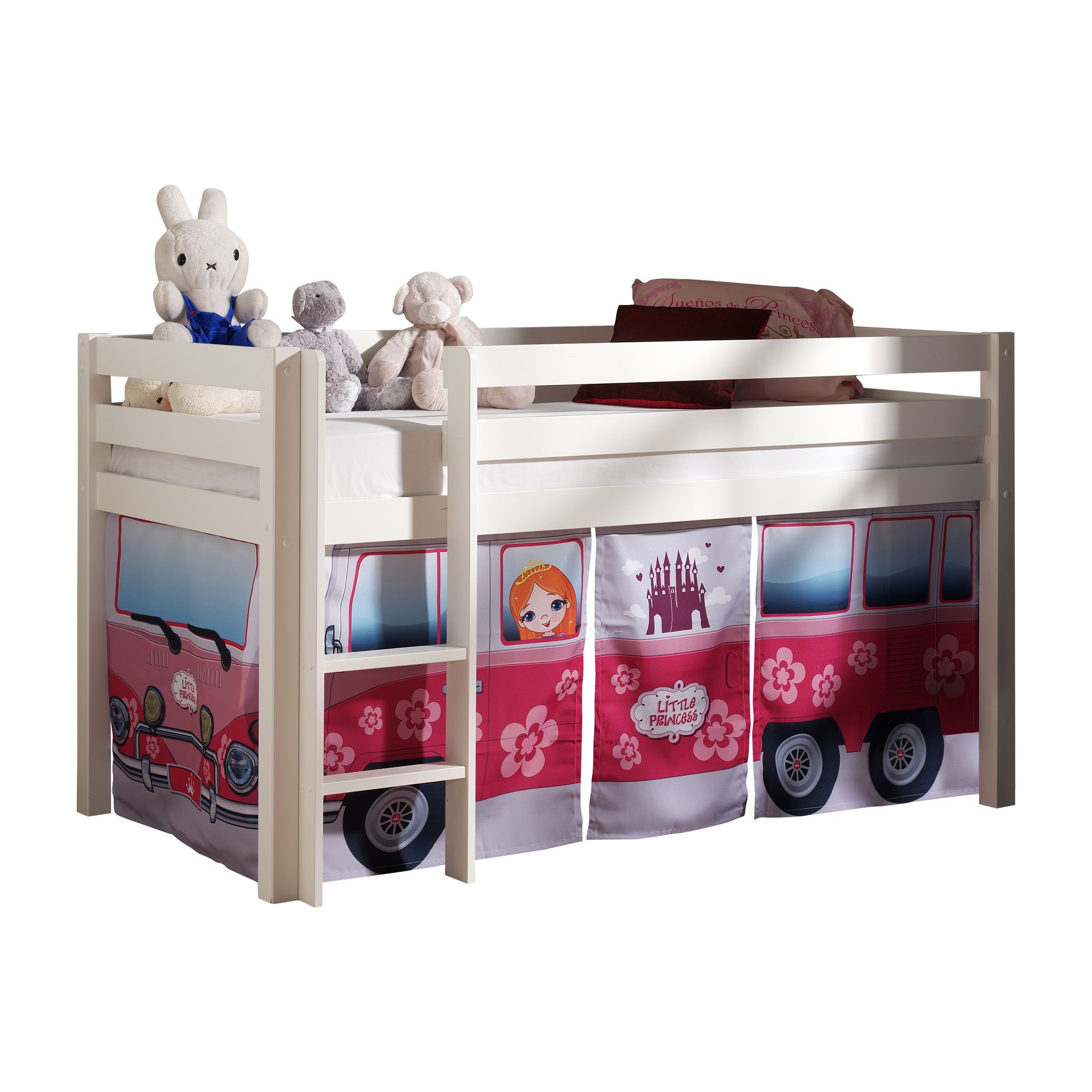Lit mi-hauteur en pin Blanc WOODY, 9 modèles