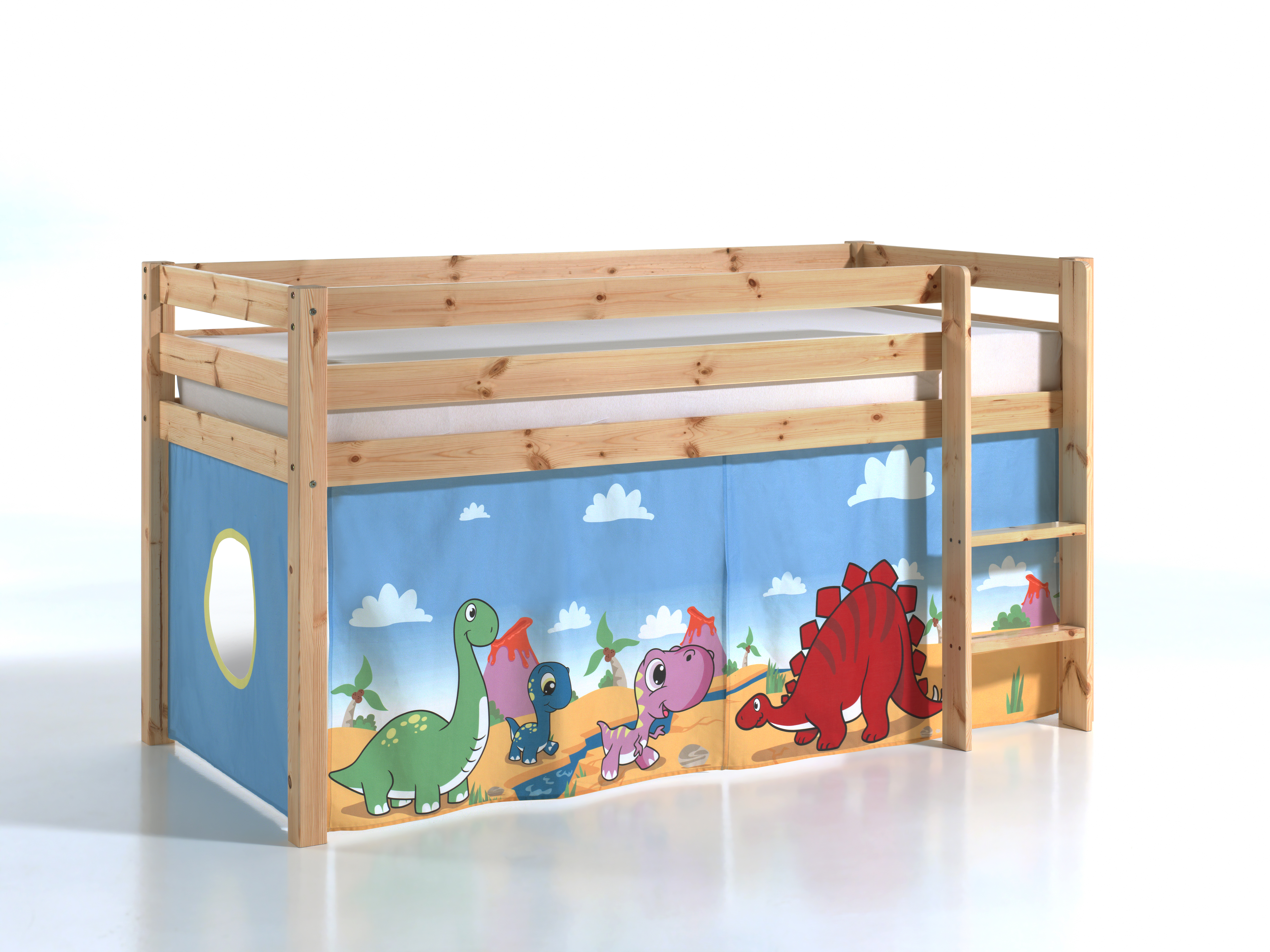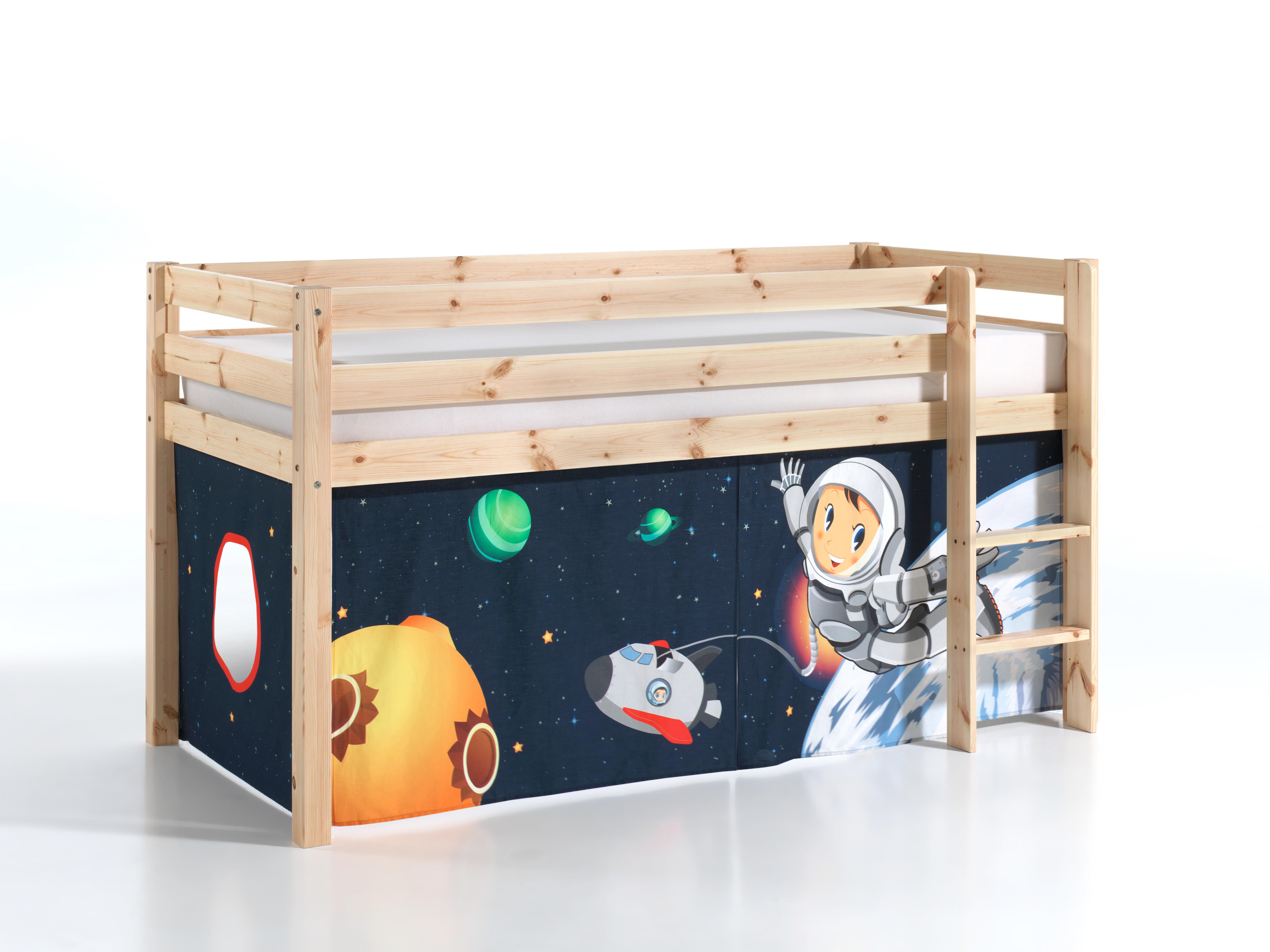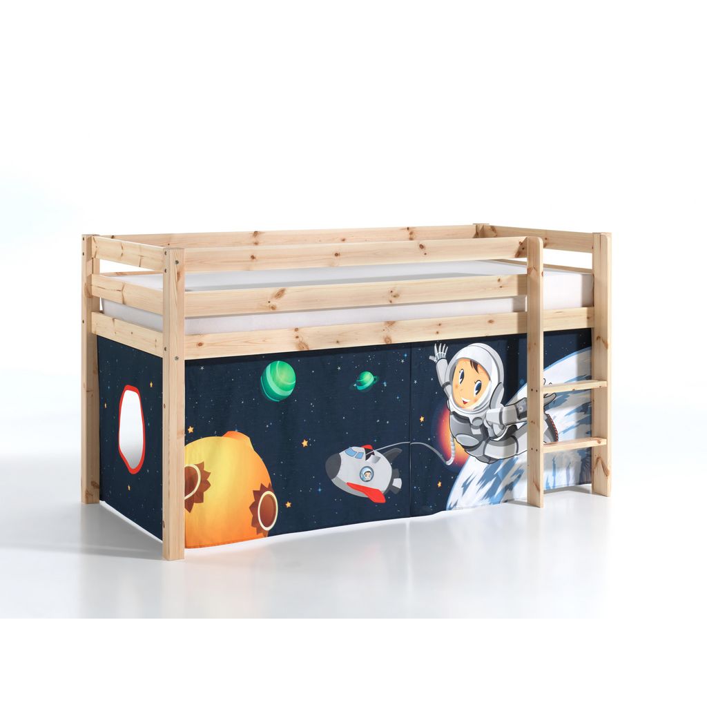 Lit mi-hauteur nature en pin WOODY, space ou dino