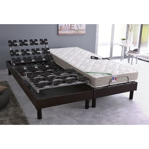 L'ensemble Literie relaxation TPR (tête et pieds relevables) dimension 180x200cm (2x90x200cm) MARIA est formidable ! Les caractéristiques de ce lit relaxation feront de ce TPR un ensemble literie grand confort au sein de votre chambre. Ses larges dimensions (180x200cm) et ses sommiers électriques équipés de 40 plots multidirectionnels et de 2 télécommandes filaires permettant d'ajuster la position de votre tête et vos pieds, ont tout pour plaire. Profitez d'un couchage de qualité en latex alvéolé d'une densité de 63kg/m3 et d'une épaisseur de 14cm. Les matelas bénéficient également d'un traitement anti-acarien et anti-bactérien ! Améliorez vos nuits en choisissant l'ensemble relaxation MARIA !