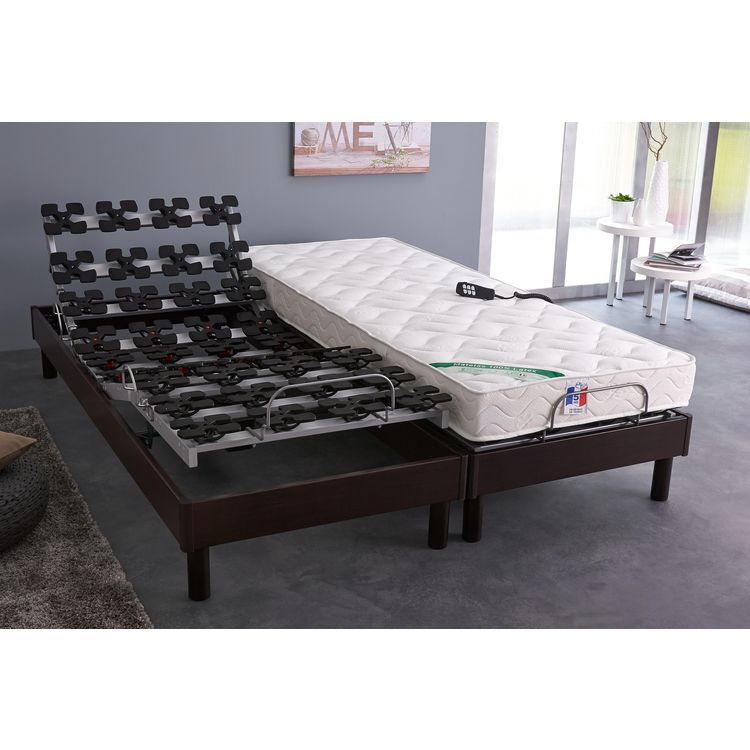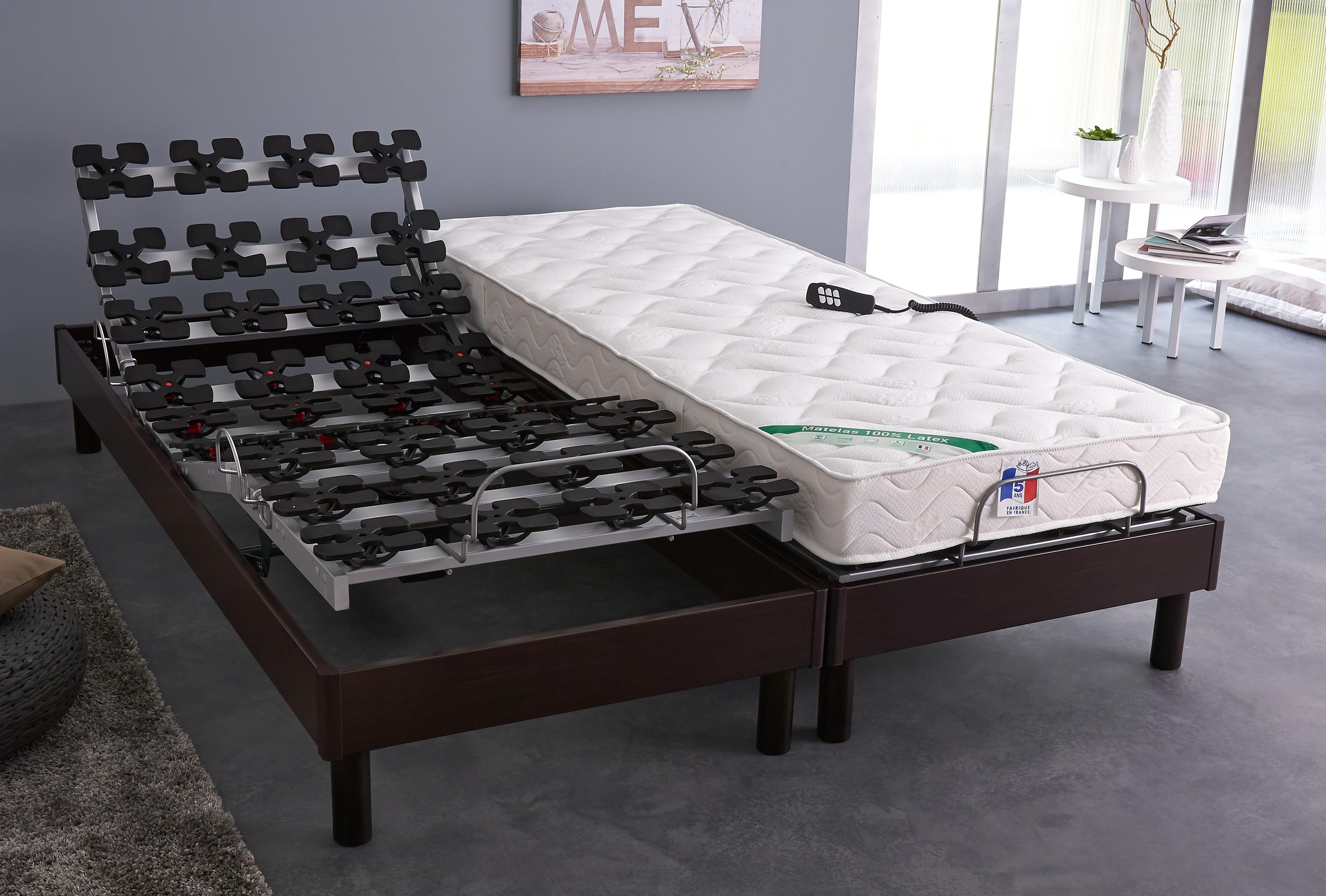 2 matelas 100% latex alvéolé + 2 sommiers relaxation électrique 90 x 200 cm - Fabrication Française