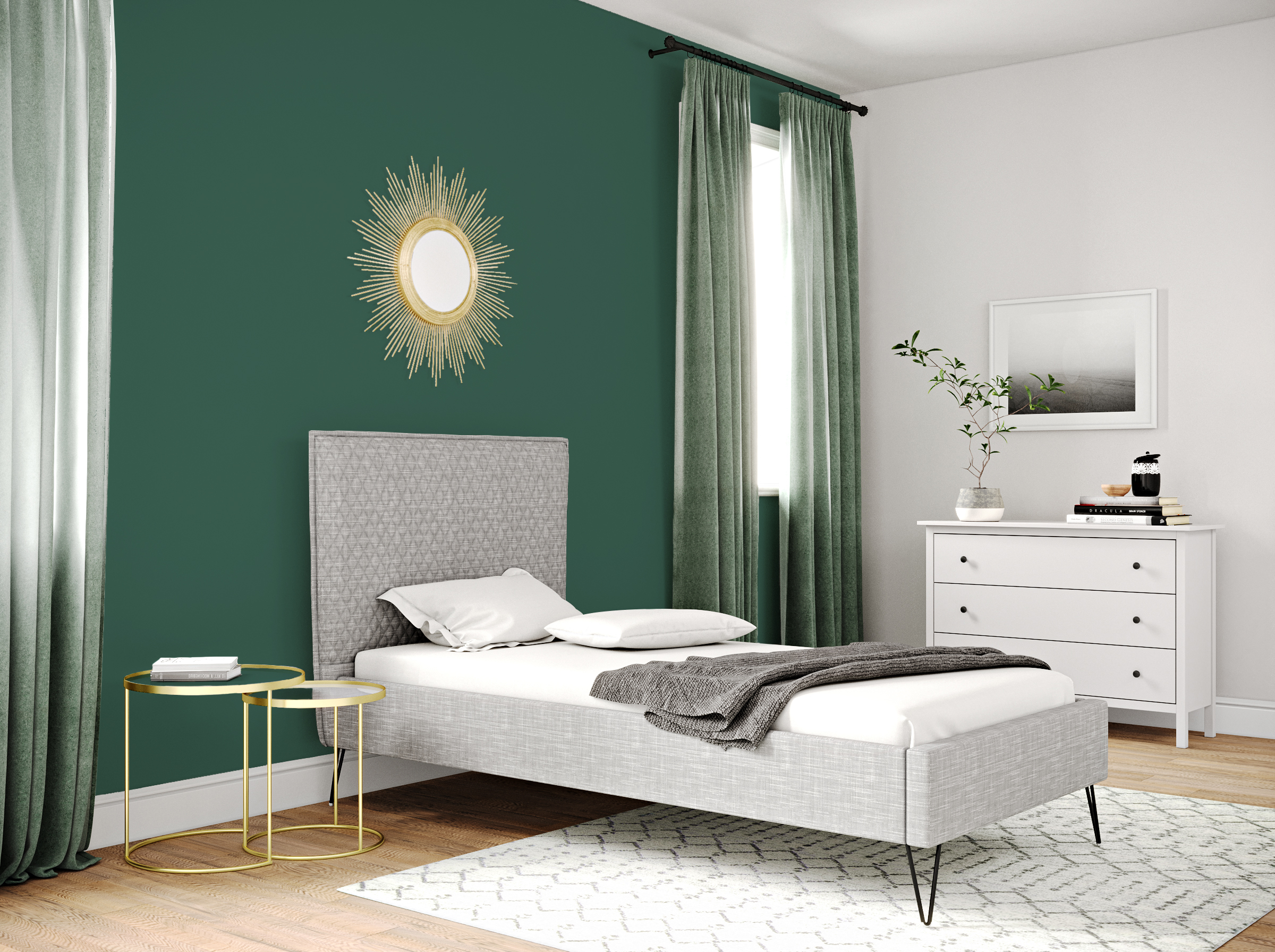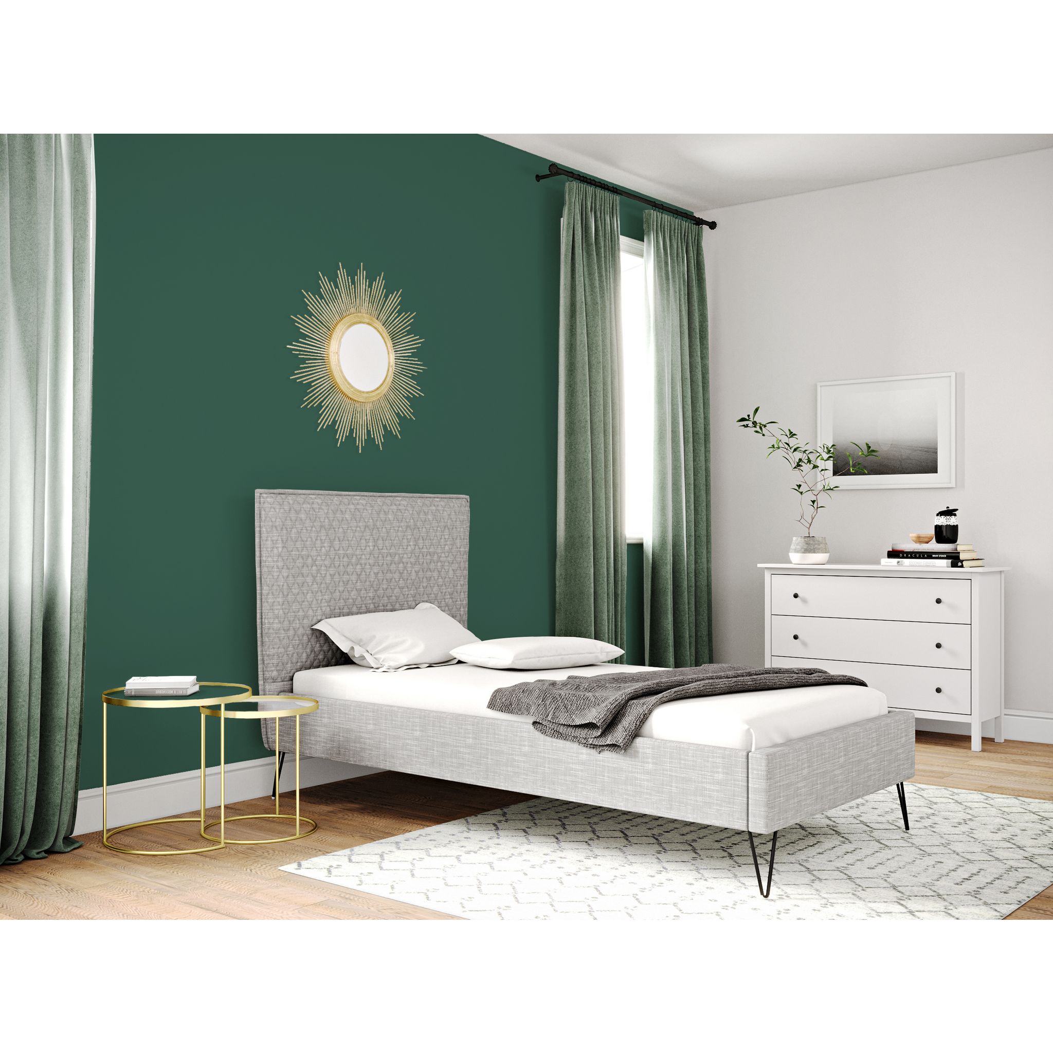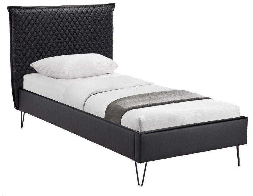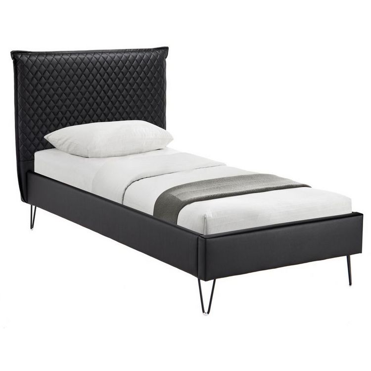 L'atout de ce lit une personne reste indéniablement son effet diamant et matelassé de la tête de lit. Elégant, il offre solidité et confort grâce à son sommier à lattes inclus. Les pieds en épingle viennent parfaitement compléter ce lit idéal pour un look design et moderne.