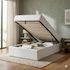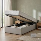 Son sommier à lattes multiplis résistantes assure un excellent maintien du matelas et favorise la ventilation du couchage. Grâce à son système de vérins hydrauliques, le sommier se relève facilement pour accéder à un grand coffre de rangement intégré, idéal pour optimiser l'espace dans la chambre.