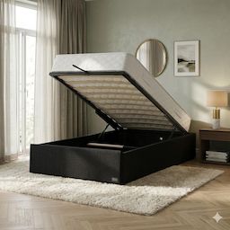 Le lit coffre combine design moderne et solution de rangement intelligente. Sa structure robuste en placage MDF renforcé et son revêtement en tissu polyester offrent une excellente durabilité et une finition élégante adaptée à tous les styles de chambre.