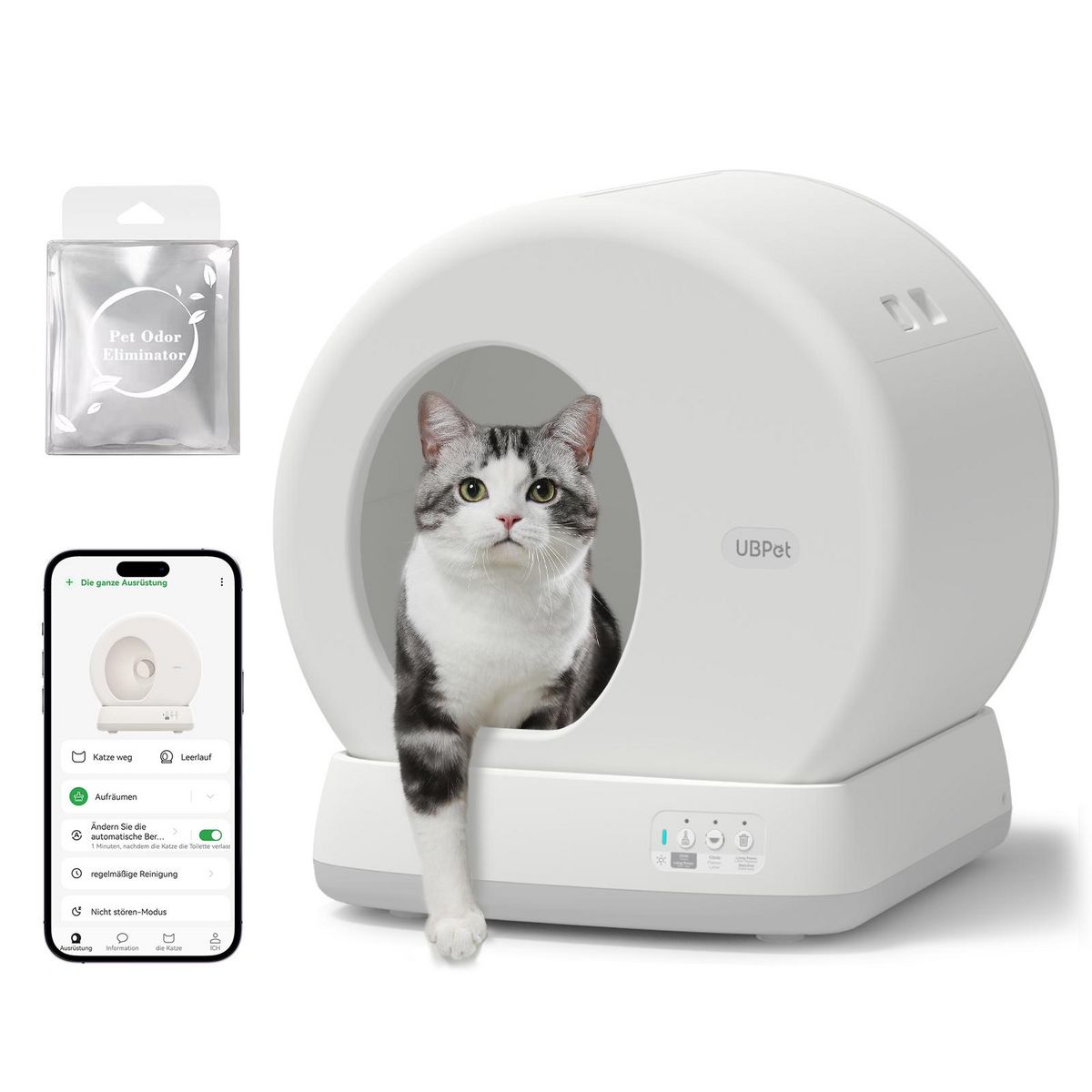 Après chaque cycle de nettoyage, les déchets sont stockés dans un conteneur hermétique afin d'empêcher les odeurs de se répandre. Un éliminateur d'odeurs se déclenche ensuite pour décomposer l'ammoniac et neutraliser les mauvaises odeurs. (Livré avec 3 capsules désodorisantes.)