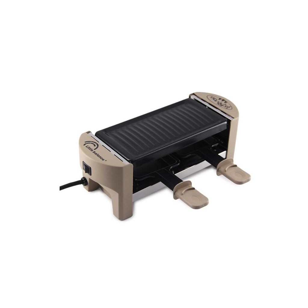 Little Balance 8693 Une raclette originale 8693 Little balance avec son décor Vache & Meuuuh sur les côtés ! Une jolie petite raclette ultra-compacte pour deux personnes, Plateau grill antiadhésif amovible, 2 poêlons antiadhésifs avec manche Cool Touch.