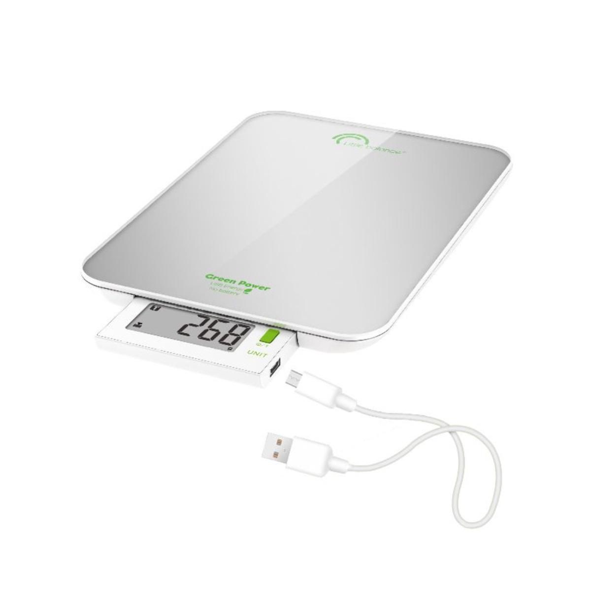 Little Balance 8183 Balance électronique Silver Nacré - Green Power - Une balance culinaire inédite libérée de la contrainte des piles ! - Grâce à sa technologie Green Power innovante. elle se charge par prise USB pendant 3 heures et stocke l'énergie 6 mois soit pour environ 500 utilisations - Son é