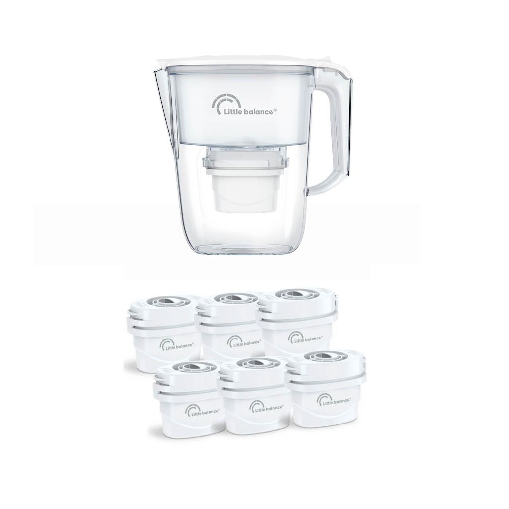 Little Balance 8634 6 cartouches filtrantes : Filtre directement l'eau du robinet en particulier toutes les impuretés de l'eau du robinet : Chlore, Calcaire, Tartre, Plomb, micro plastiques. Capacité de filtration optimisée et performante : 1 cartouche = Chlore 120 l / calcaire 100 l.Composition nat