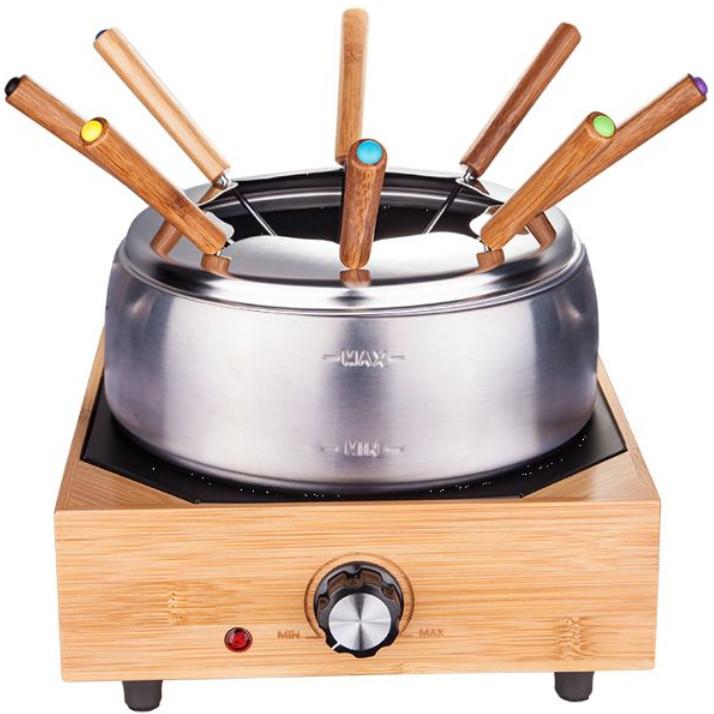 Little Balance 8320 Service à fondue 8 personnes Happy Little Balance 8320. Un appareil multifonction pour toutes vos fondues : fondues savoyardes, fondues bourguignonnes, fondues chinoises ou même fondues au chocolat ! Caquelon XL en inox antiadhésif d'une grande capacité de 2 L. Couronne en inox avec encoches pour positionner les fourchettes lors de la cuisson. 8 fourchettes avec poignée en bambou avec bouton de couleurs différentes afin que chaque convive retrouve facilement sa fourchette. Thermostat réglable pour adapter la température de cuisson à chaque recette. Base chauffante élégante en bambou avec pieds antidérapants.