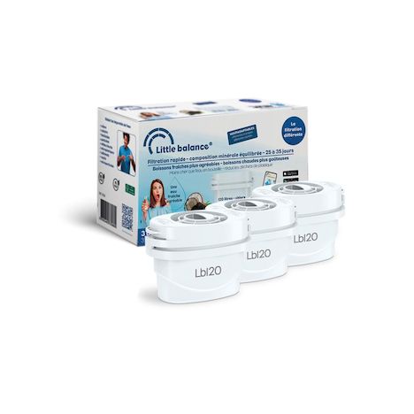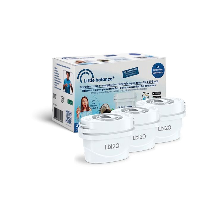 Little Balance 8588 Lot de 3 cartouches filtrantes : Filtre directement l'eau du robinet en réduisant toutes les impuretés de l'eau du robinet : Chlore, Calcaire, Tartre, Plomb, micro plastiques : 3 mois d'une eau plus pure, au goût neutre.