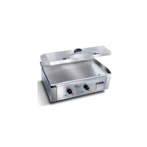 Plancha électrique professionnelle, munie de 2 zones de chauffe indépendantes, avec thermostat indépendant : Pour saisir les viandes d'un côté, griller les légumes de l'autre, adaptez simplement le thermostat de la zone de chauffe (Jusqu'à 300°C), pour des cuissons adaptées et toujours réussies !