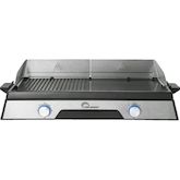 Découvrez la Plancha électrique Little Balance Innov 2200, avec une puissance de 2200W pour une cuisson rapide et efficace. Elle dispose de deux zones de cuisson indépendantes, combinant grill et plancha sur une grande surface de 50x30 cm. La plaque est équipée d'un revêtement antiadhésif en microcé
