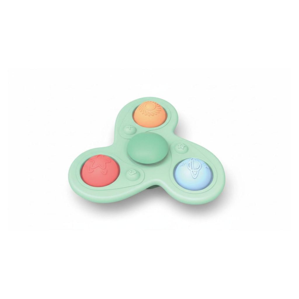 Explorez, touchez, tournez ! Ce spinner en silicone est conçu pour stimuler la curiosité des tout-petits . Facile à attraper, avec des textures douces et des couleurs contrastées, il invite à l'éveil sensoriel et au jeu. Un jouet simple et captivant qui tourne.. et fascine !