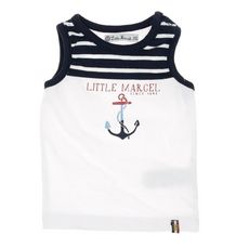 Craquez pour le débardeur bébé Little Marcel !Sans manches Col rondPressions sur l'épauleColoris : Blanc/MarineComposition : 95% coton , 5% élasthanne