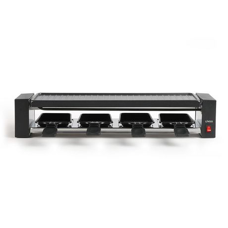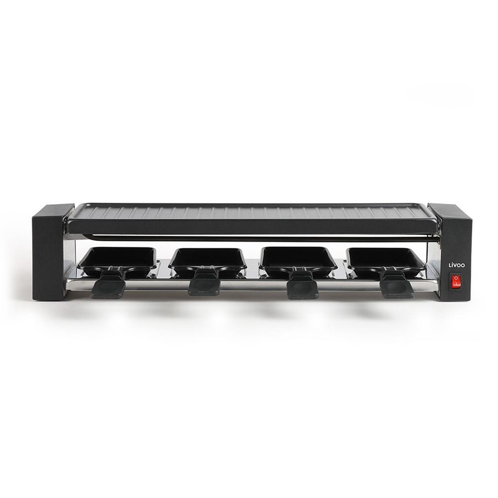 Livoo DOC259 Soirée raclette, pour entretenir votre corps d'athlète. - Appareil à raclettePuissance : 800 WPlateau gril amovible 42 x 11 cm avec revêtement antiadhésifInterrupteur lumineux ON/OFFPoignées thermo-résistantes et pieds antidérapants4 caquelons à revêtement antiadhésif inclusDimensions :