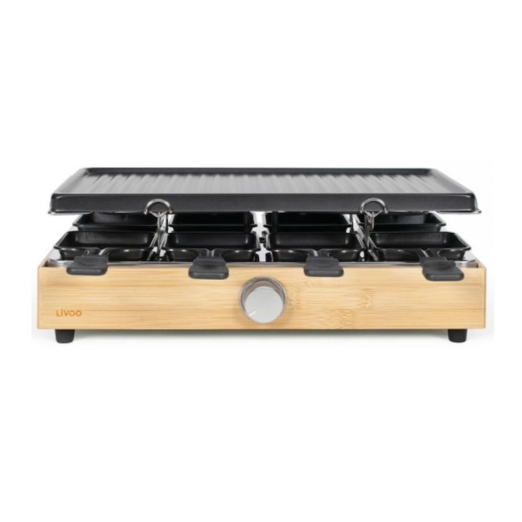 En savoir +Livoo DOC336 Appareil à raclette DOC336 de Livoo. Doté d'une puissance de 1400 W et d'un thermostat ajustable, cet appareil permet de faire fondre le fromage rapidement et uniformément. Plateau grill amovible d'une surface de cuisson de 42 x 23 cm, idéal pour cuire des aliments pendant que le fromage fond Permet de rassasier de grandes tablées ou les convives les plus gourmands grâce aux 8 spatules en bois et 8 caquelons.