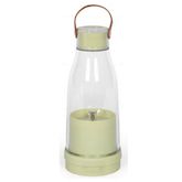 Blender nomade avec sa poignée de transport et son bouchon, idéal pour préparer jus ou smoothie à emporter. Facile d'utilisation, il suffit de double cliquer pour démarrer le mixage et cliquer un fois pour l'arrêter. Sa batterie 1500 mAh se recharge via un câble USB type C.