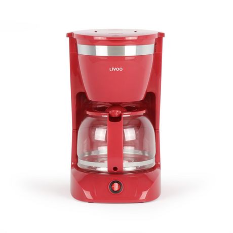 Livoo DOD163RC Préparez votre café, avec votre cafetière préférée ! - Cafetière électriquePuissance : 800 WCapacité : 1.25 LCapacité : 10-12 tassesPlaque chauffante antiadhésive et fonction maintien au chaudInterrupteur marche/arrêt lumineux et système d'arrêt automatiqueFiltre permanent avec poigné