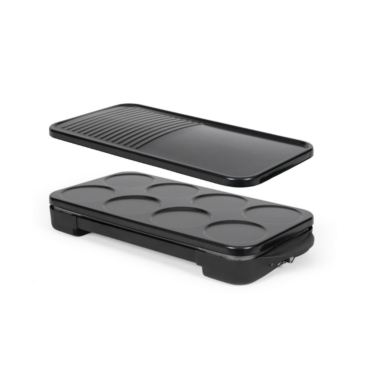 2 plaques amovibles 54.4 x 28.8 cm pour 8 mini crêpes Ø 11.5 cm ou pour cuire des aliments.