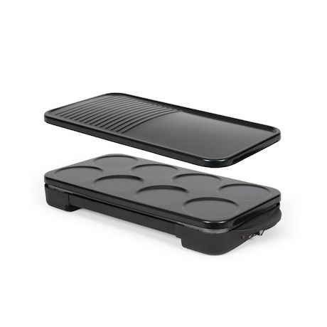 Appareil 2 en 1 qui permet de passer un moment festif en famille ou entre amis autour d'une crêpe party 8 personnes, ou un moment convivial à griller des aliments autour d'une plancha grill.