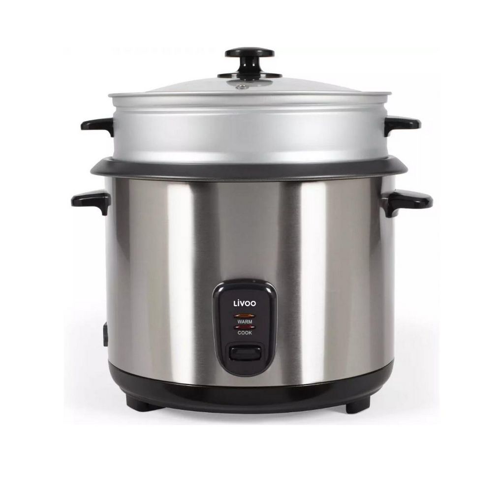 Livoo DOC293 Cuiseur à riz et vapeur DOC293 de Livoo en acier inoxydable. Très grande capacité qui permet de cuire du riz jusqu'à 16 personnes. L'appareil s'arrête automatiquement et maintient le riz au chaud pour servir au moment souhaité. Nettoyage facile grâce à la cuve amovible antiadhésive. - T
