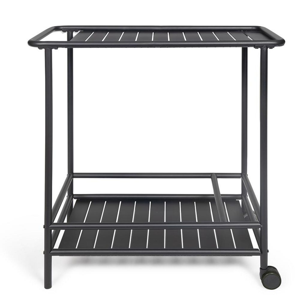Livoo GS163N Desserte de jardin 61 x 42 cm noir GS163N LivooIdéale pour préparer des repas en plein air grâce à son plateau supérieur de 66 x 42 cm et son plateau inférieur de 61 x 42 cm avec rangement pour bouteilles. Conçue en acier revêtu, cette desserte audesign industriel est résistante à la ro