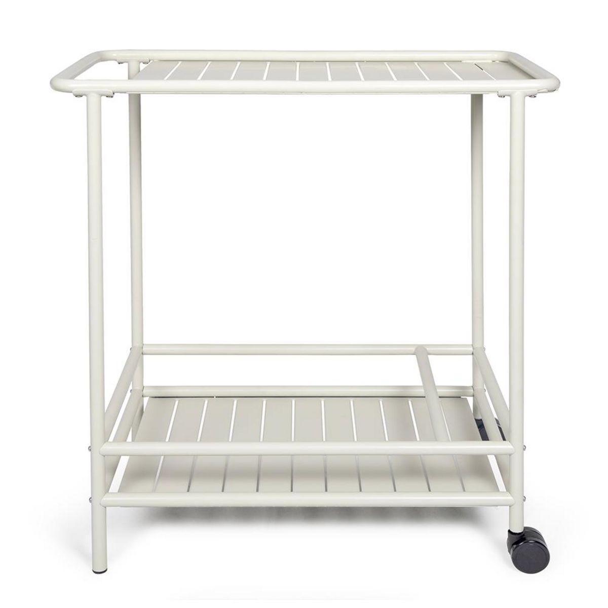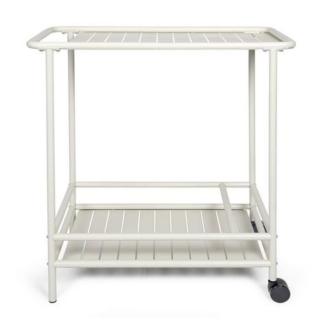 Livoo GS163C Desserte de jardin 61 x 42cm blanc GS163C LivooIdéale pour préparer des repas en plein air grâce à son plateau supérieur de 66 x 42 cm et son plateau inférieur de 61 x 42 cm avec rangement pour bouteilles. Conçue en acier revêtu, cette desserte audesign industriel est résistante à la ro