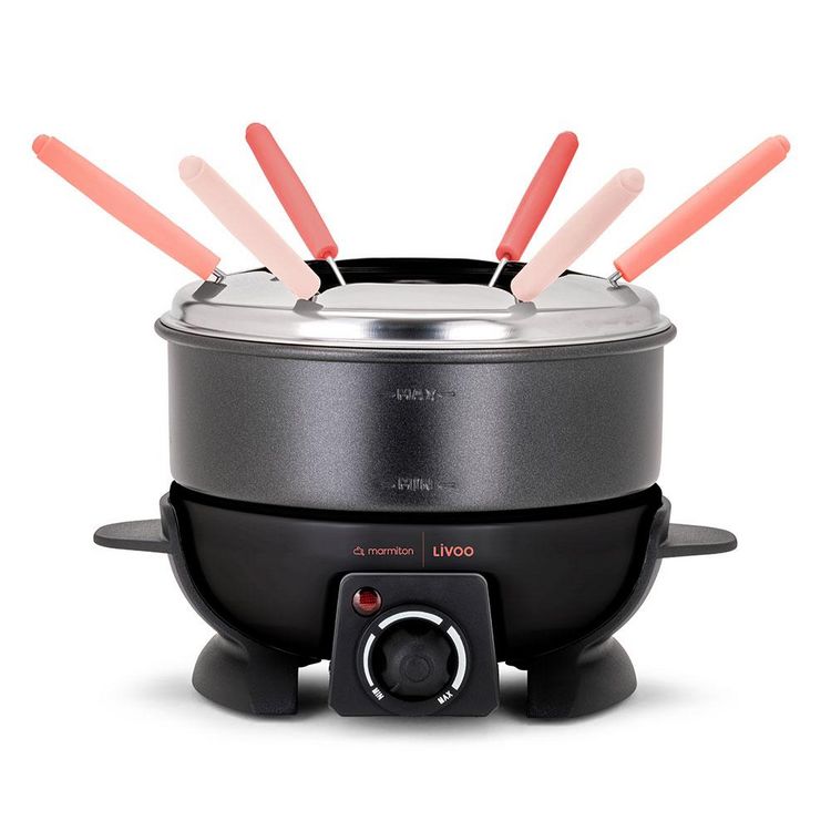 Livoo DOC308 Fondue électrique 650w 6 fourchettes DOC308 de LivooCaquelon d'une capacité de 1,6 L pour 6 personnes, avec fourchettes colorées, parfait pour des soirées conviviales.Thermostat ajustable et puissance de 650 W, pour une cuisson maîtrisée adaptée au type de fondue.Revêtement antiadhésif