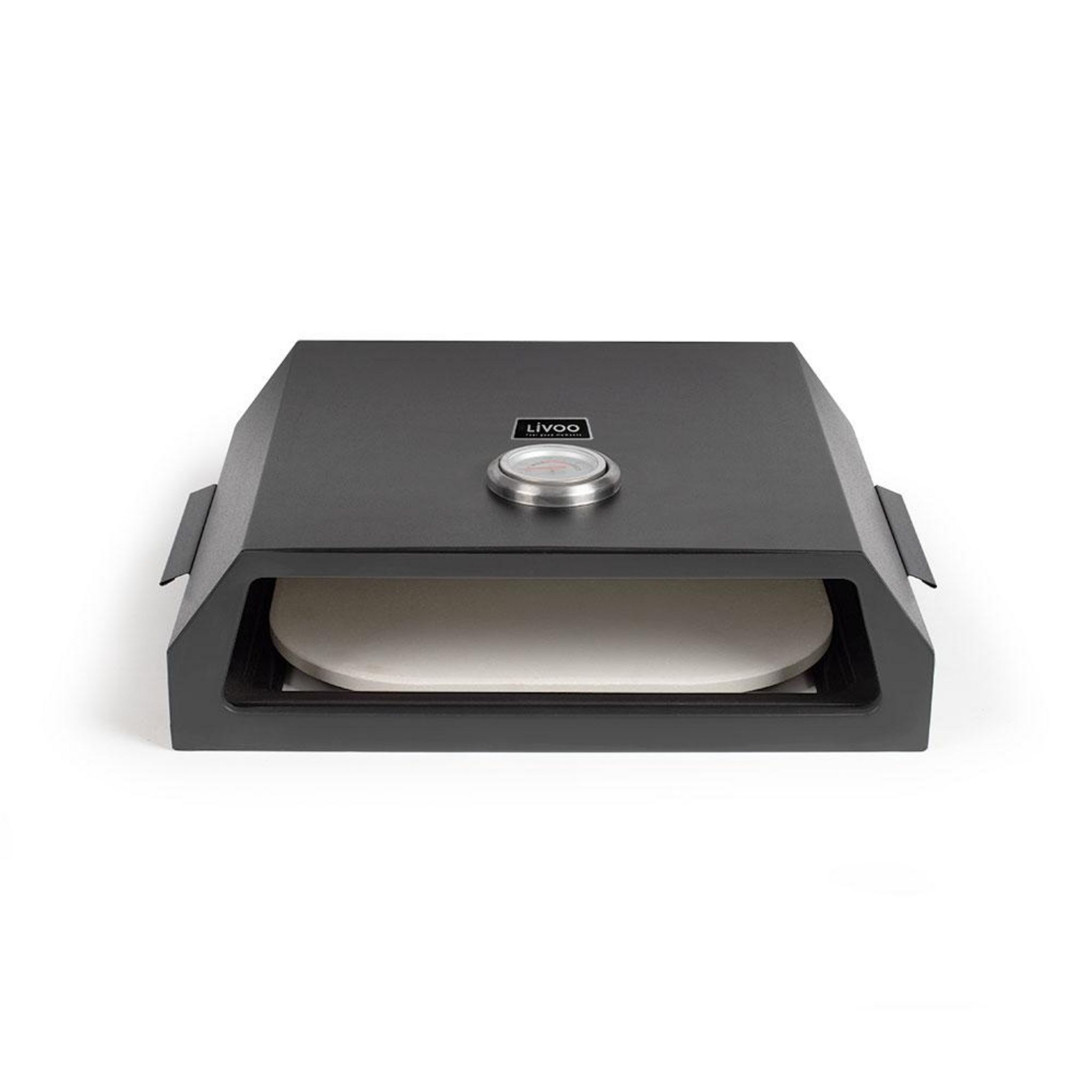 Livoo GS149 Four à pizza GS149 de livoo pour une utilisation avec des barbecues au gaz ou au charbon de bois. - Type de produit : Four à pizza pour barbecueMatière : Acier inoxydable, pierre.Revêtement : Peint.Surface de cuisson : 33,5 x 27,5 cm.Pour cuire des pizzas sur Barbecue.Thermomètre et poig