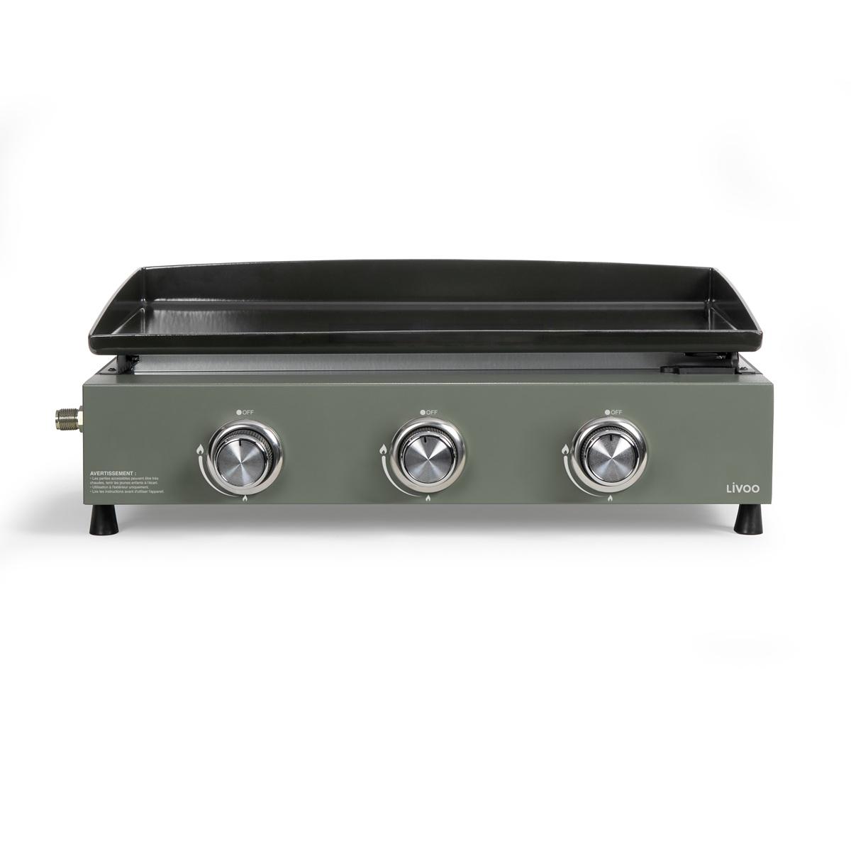 Livoo DOC324 Plancha gaz de Livoo DOC324.Grande surface de cuisson de 62 x 34,5 cm, idéale pour 6 à 8 personnes.Cuisson facile, rapide et homogène grâce à la surface en acier émaillé et aux 3 brûleurs de 7,5 kW avec allumage automatique intégré.Nettoyage simplifié grâce au récupérateur de graisse et