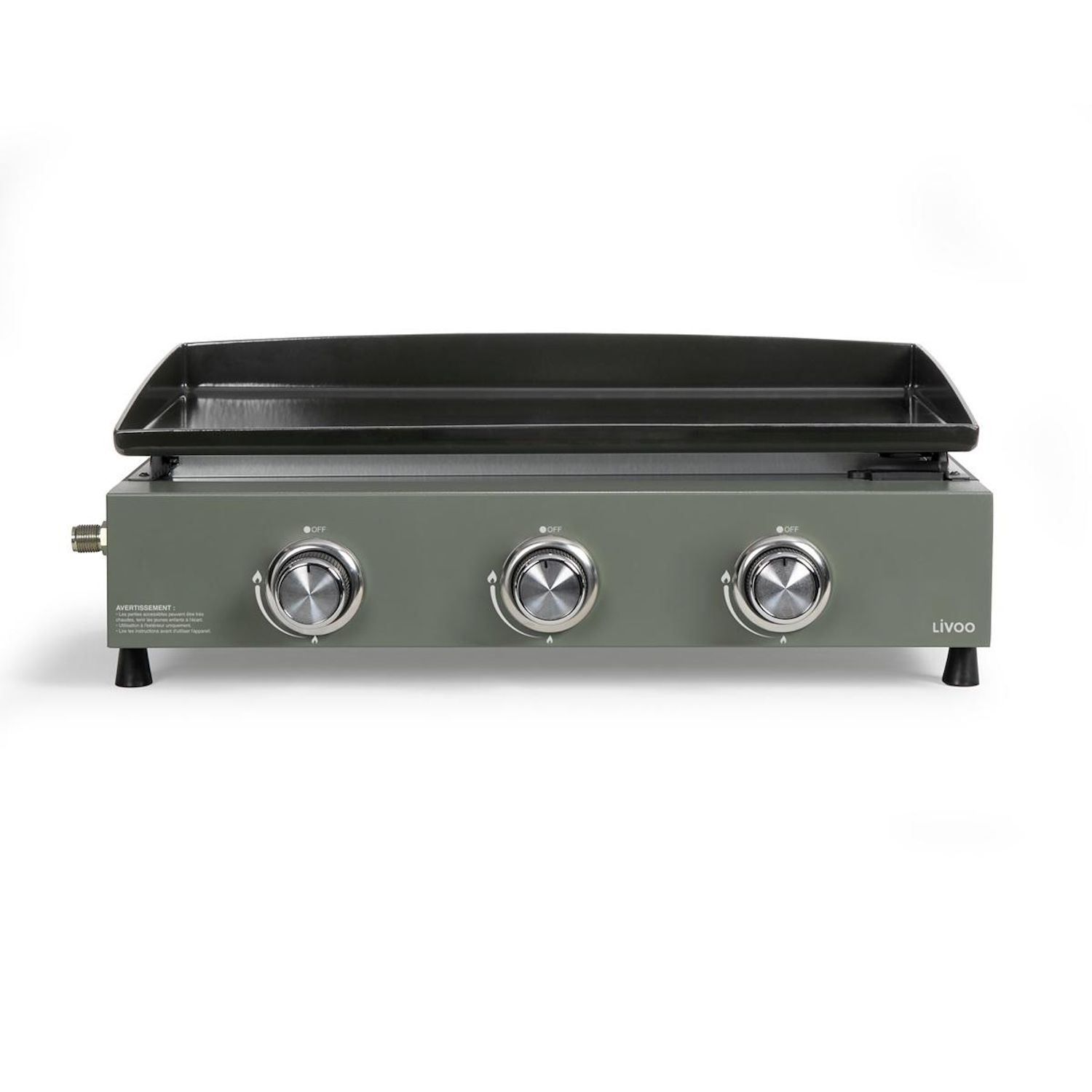 - Plancha gaz.Idéale pour 6 à 8 personnes.Matière principale : Acier3 brûleurs acier inoxydable.Puissance totale : 7500 W.Plaque de cuisson amovible en acier émaillé 62 x 34,5 cm.Epaisseur de la plaque de 3,5 mm.Allumage automatique intégré.Habillage en acier peint.Récupérateur de graisse amovible.Pour 6 à 8 personnes.Fonctionne avec butane et propane.Tuyau de gaz et détendeur non inclus.Dimensions : 67 x 47 x 24 cm .Couleur principale : Vert.Poids : 13 Kg.