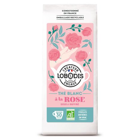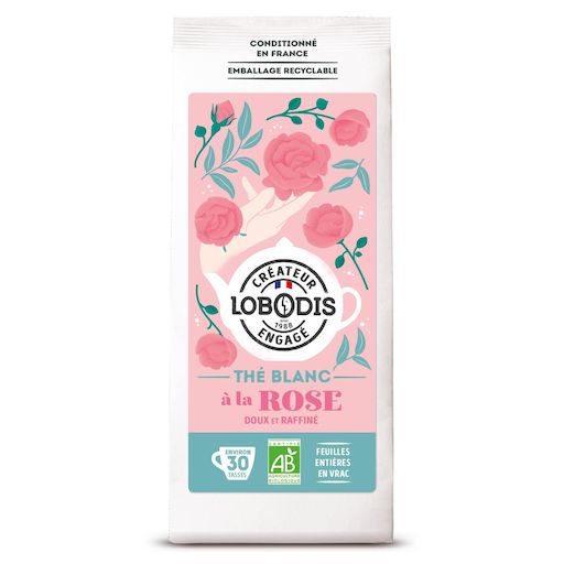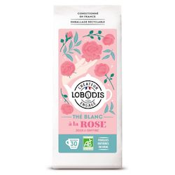 Thé blanc de Chine*, pétales de rose*, arôme naturel de rose* *ingrédients issus de l'agriculture biologique (100%)