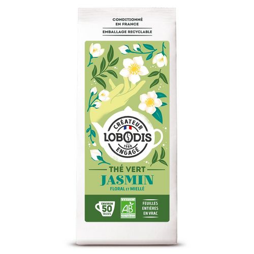 Thé vert jasmin de Chine* (100%). *ingrédients issus de l'agriculture biologique. Respecte les règlementations européennes en vigueur.